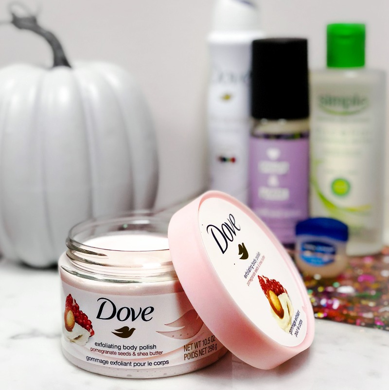 Dove Exfoliating Body Polish comes in a few scents, but this is my favorite. Second favorite is crushed macadamia and rice milk.