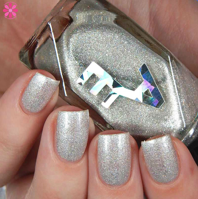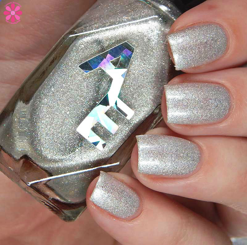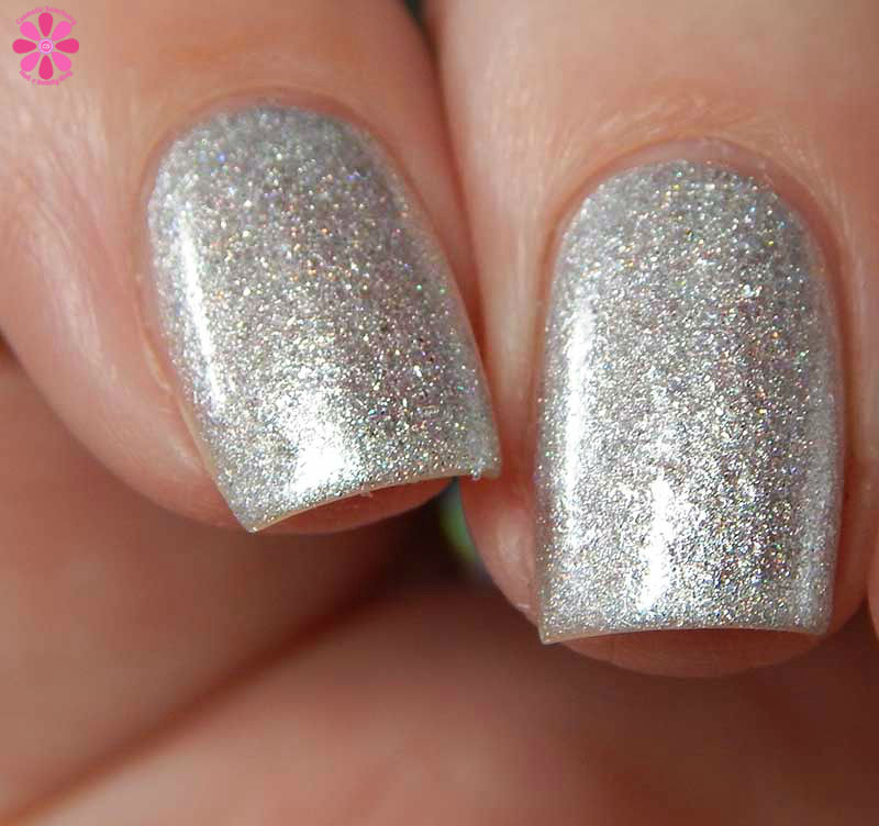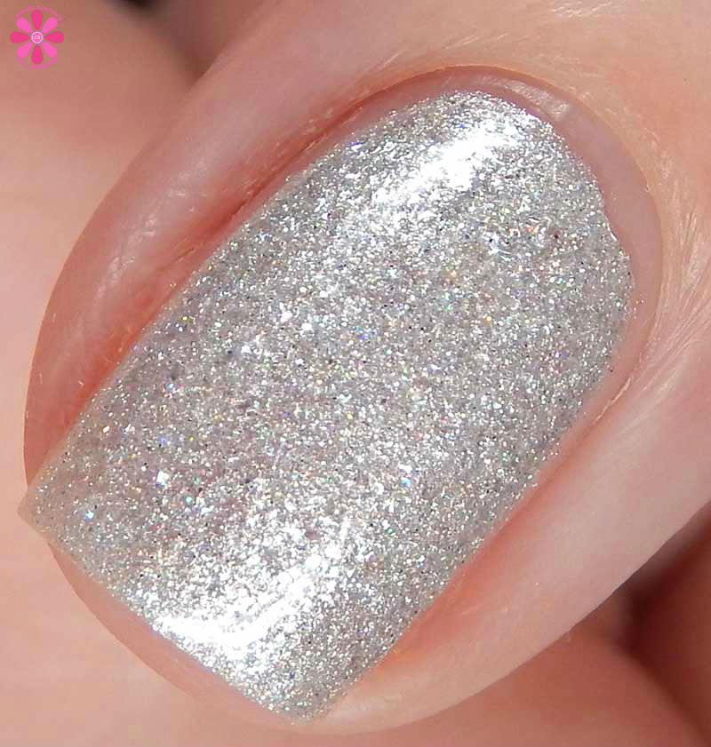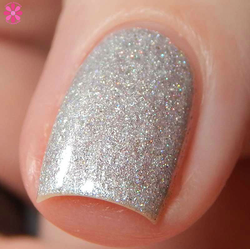 Alter Ego Nail Enamel Rime Time is a white jelly base full of silvery iridescent microglitters and a very light sprinkling of silver holo microglitters. I know this was created for the Fall theme, but I am so using this one a lot throughout Winter. It’s freaking PERFECT. I used 2 coats and a glossy top coat for these photos. Everything laid relatively flat, so only 1 coat of top coat is needed. The iridescent particles are super small.