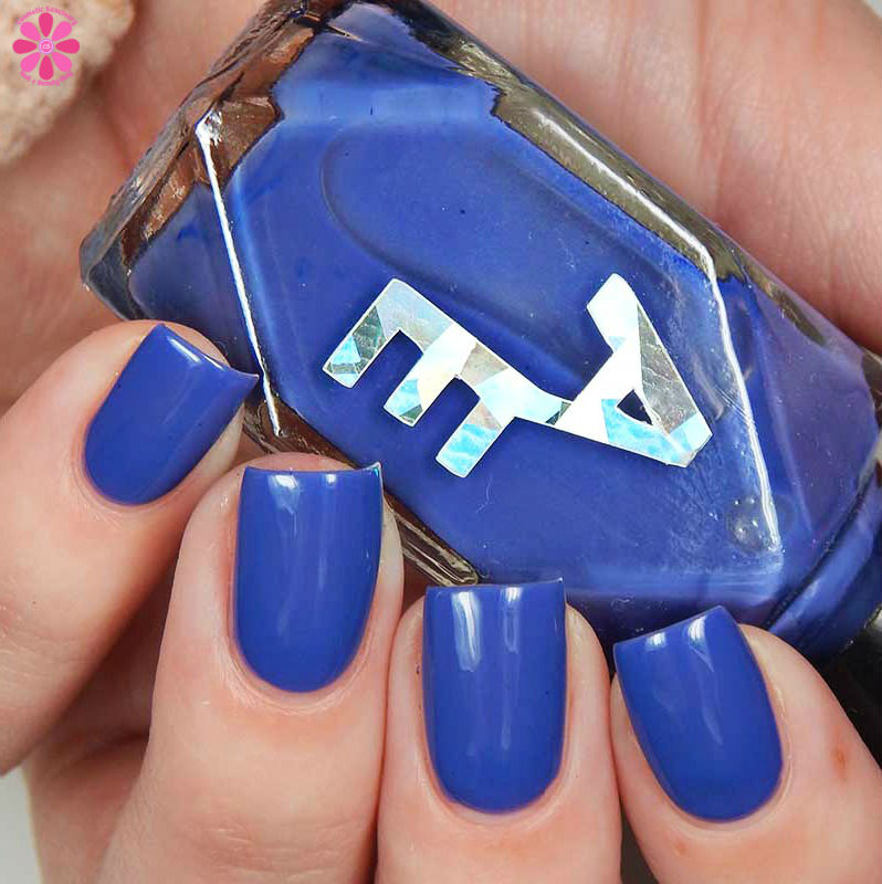 Crème de Cassis is a gorgeous blurple creme that leans a bit more into blue territory. I used 3 thin coats and a glossy top coat for these photos.