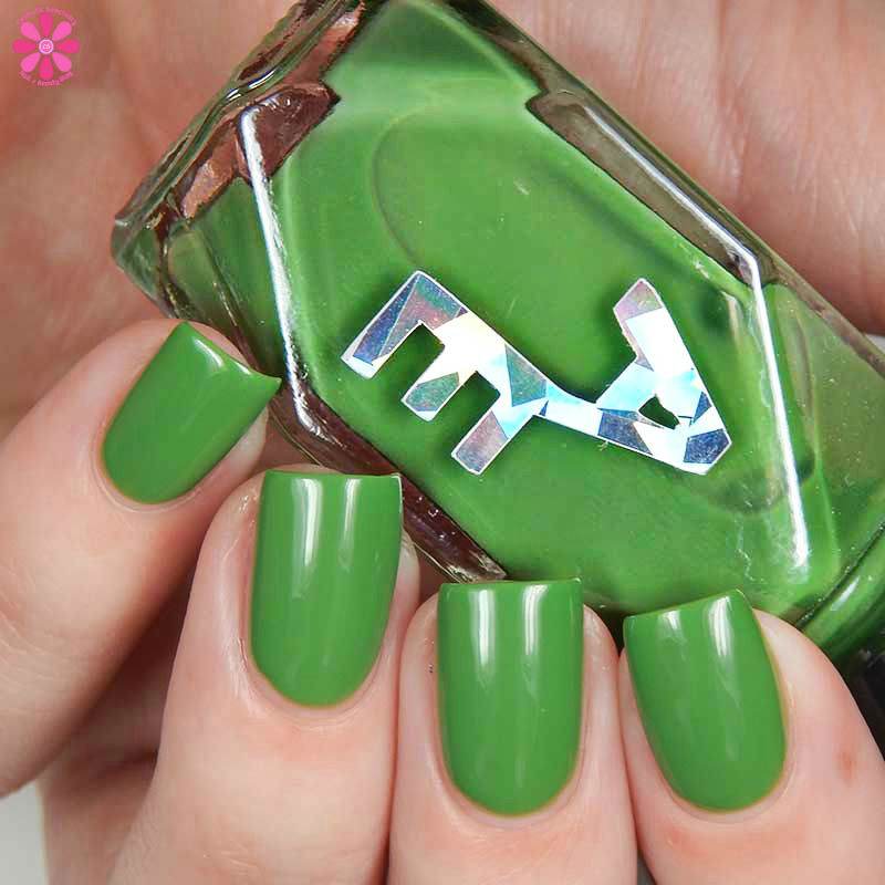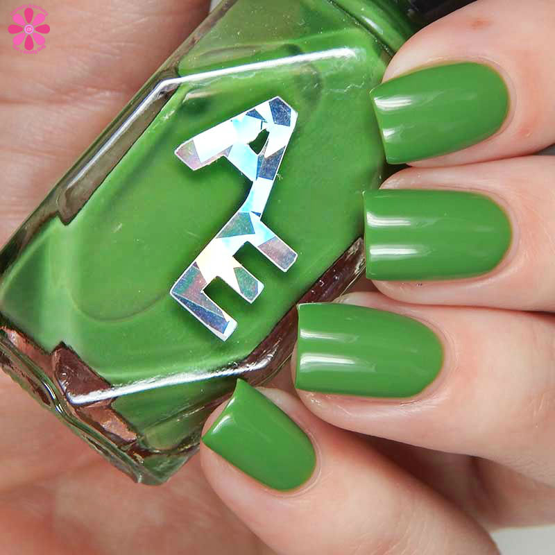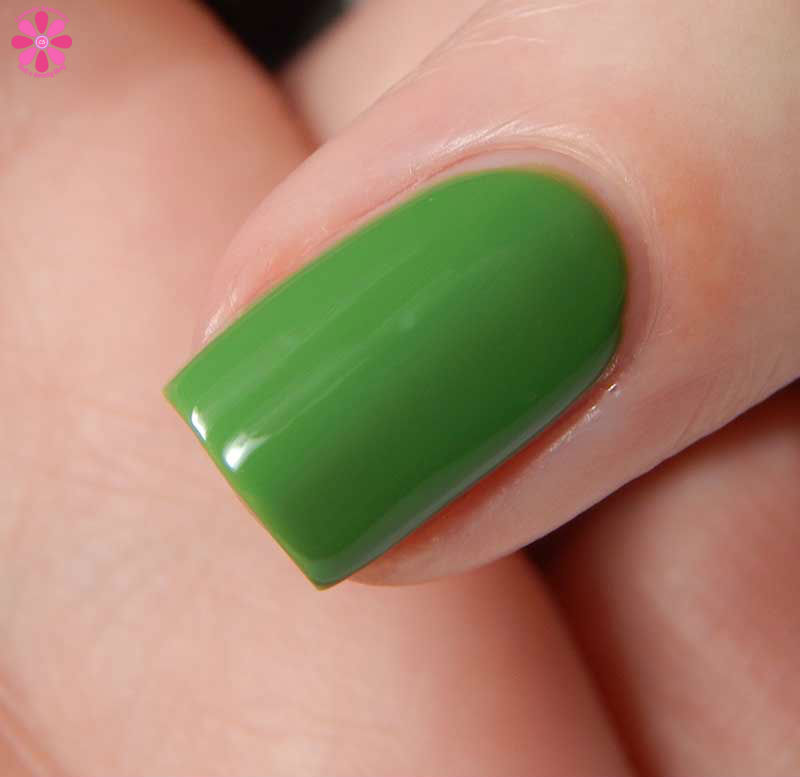 Crème de Menthe is a very slightly muted grass green creme. I used 3 thin coats and a glossy top coat for these photos.
