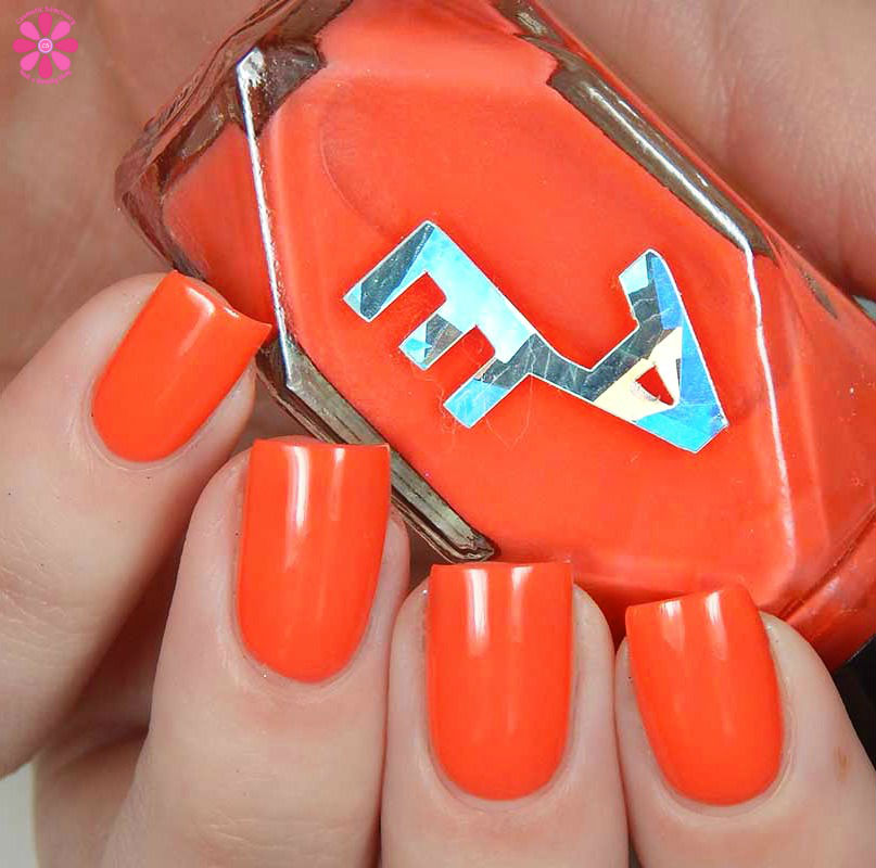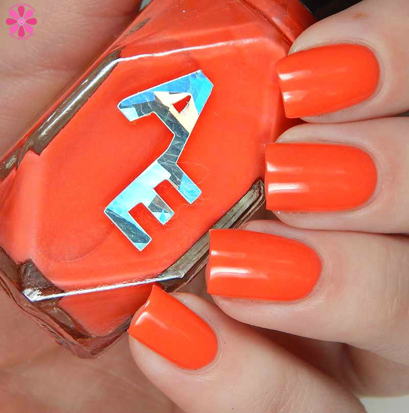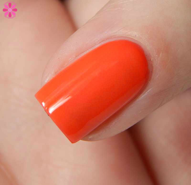 Crème de Noyaux is a gorgeous coral creme. It’s a tad more pinky red in person, but it’s bright and fun! I used 3 thin coats and a glossy top coat for these photos.