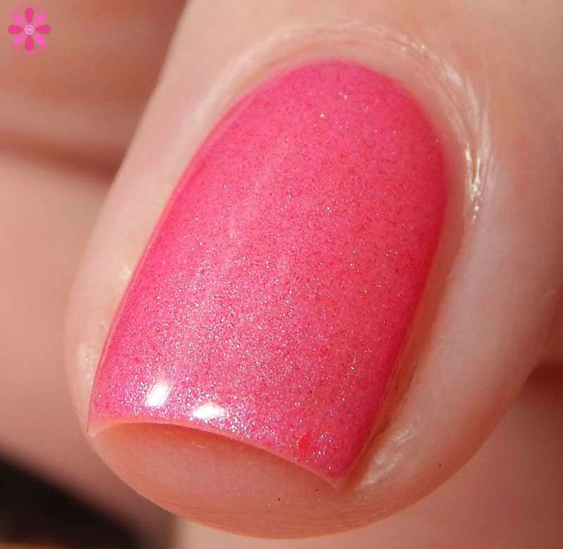 Poetry Cowgirl Nail Polish Light in the Dark is a bright pink creme with turquoise shimmer. I used 2 coats and a glossy top coat for these photos.