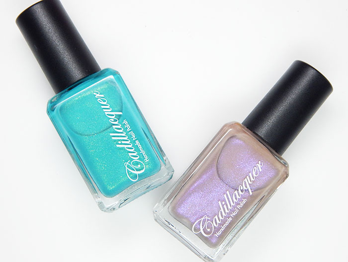 Above we have Ethereal and Oblivion! These are the newest exclusives from Cadillacquer on the Color4Nails shop – and they are gorgeous. Both have an incredible shimmer and flake combo that makes the polishes have that glowy appearance that I adore.