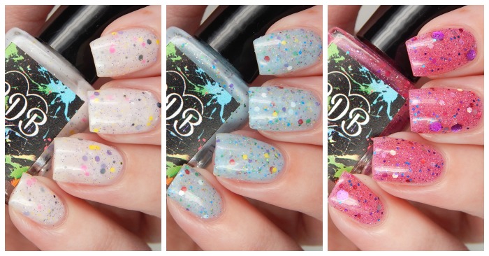 All 3 are stand alone shades that will be available for a bit in her shop. All 3 are different glitter creations, one with a jelly base and two with crelly bases that are absolutely lovely!