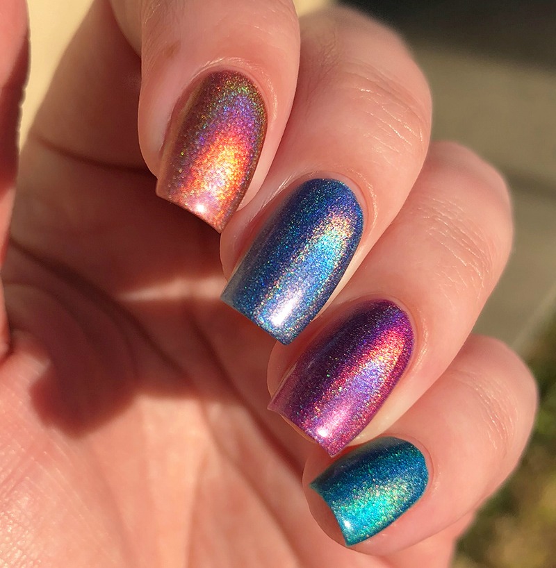 As I’ve mentioned before, my light setup isn’t holo friendly – but it still was able to pick up the holo within these shades in the closer shots. They all have a very pretty “fluid” looking holo arc that I really enjoy. I’ve had people ask before what I mean by “fluid” and for me it is just a very smooth, almost water like arc with few “particles” to break the appearance up. I hope that made sense?