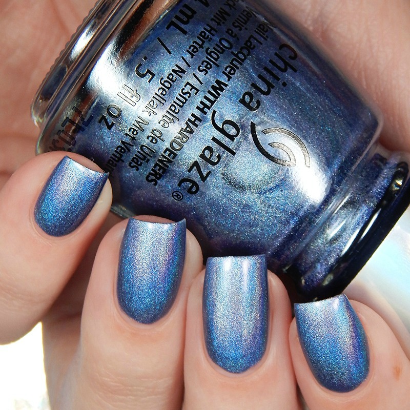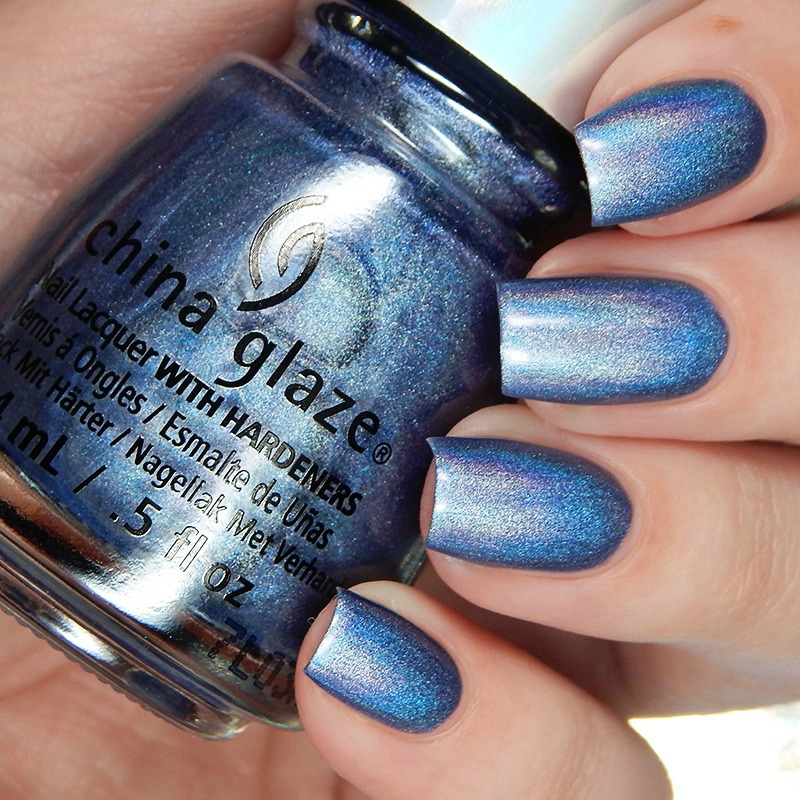 China Glaze 2Nite is a medium blue linear holographic. I used 2 coats for these photos.