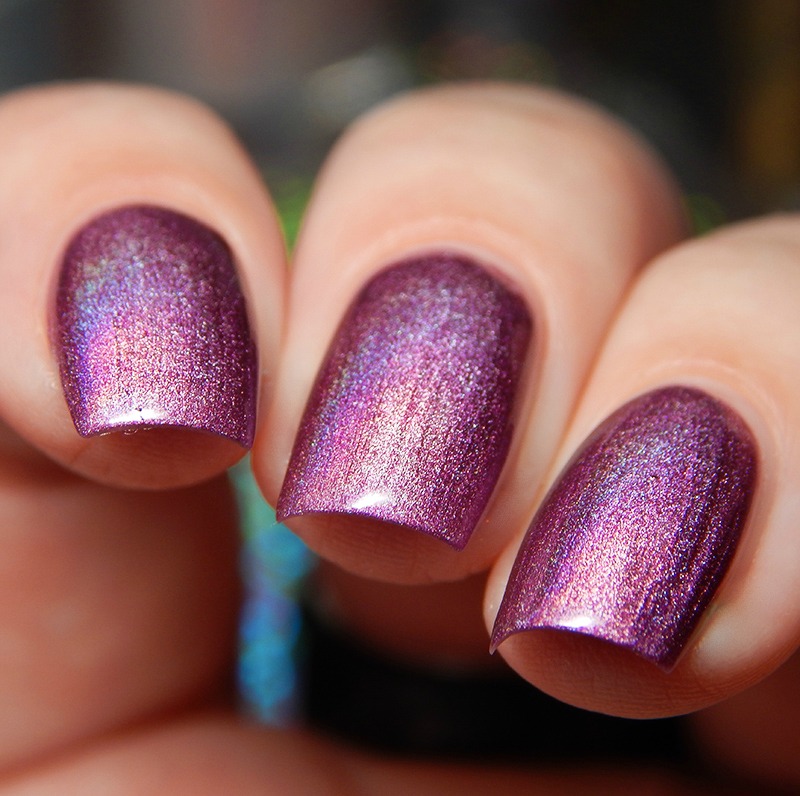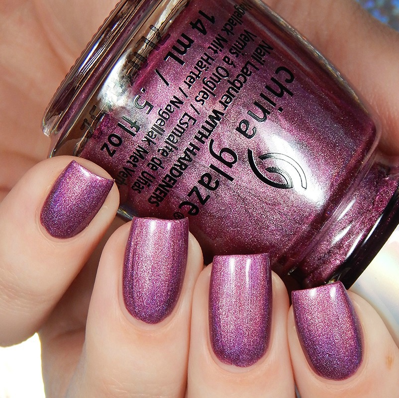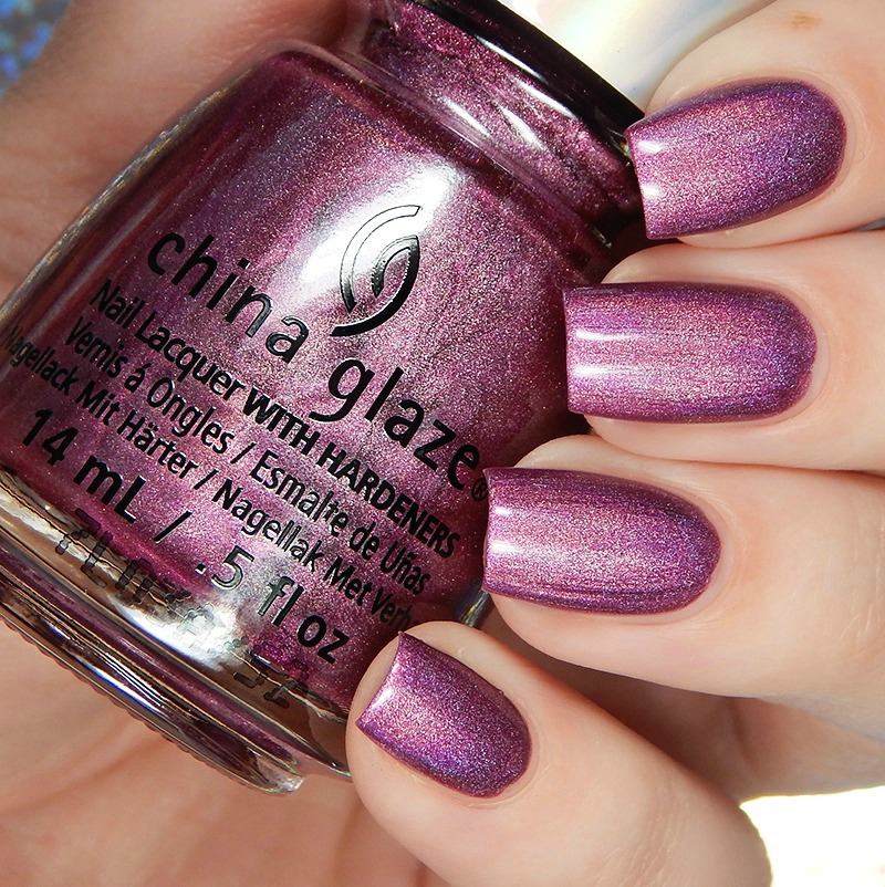 China Glaze BFF is a medium purple leaning pink linear holographic. I used 2 coats for these photos.