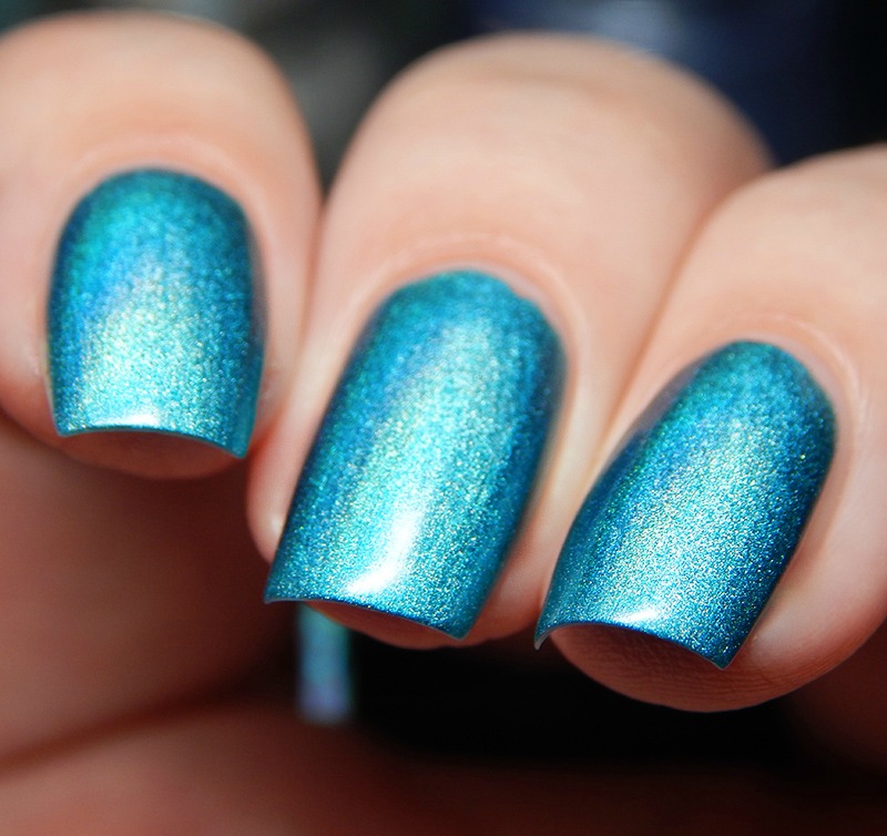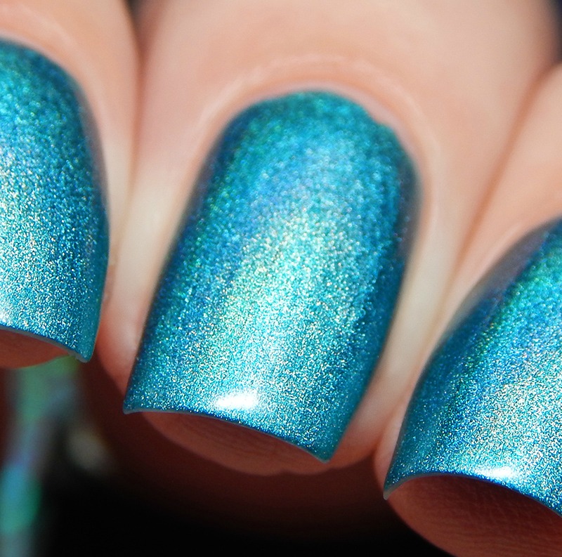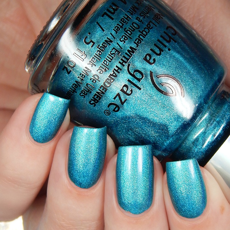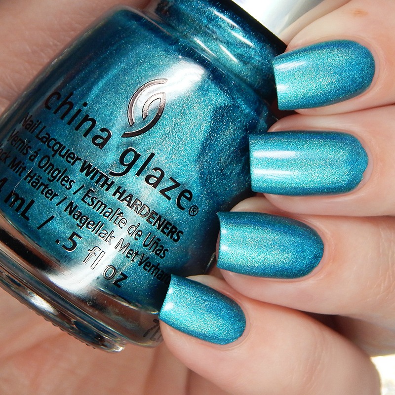 China Glaze DV8 is a vibrant teal linear holographic. I used 2 coats and a glossy top coat for these photos.