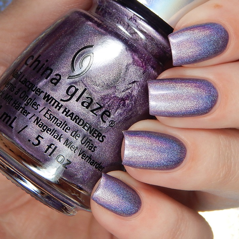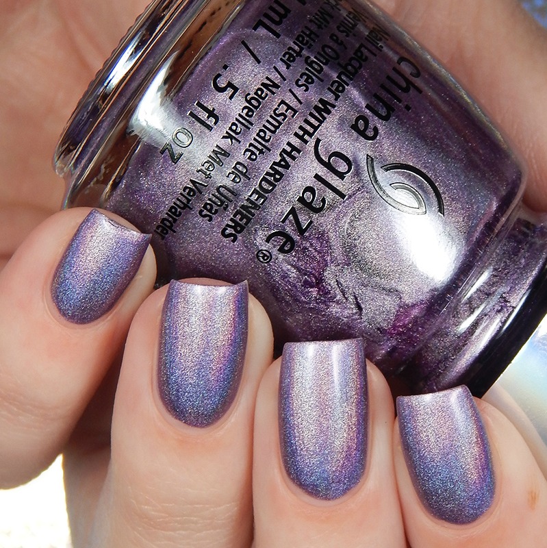 China Glaze IDK is a medium purple linear holographic. I used 2 coats for these photos.