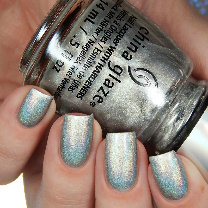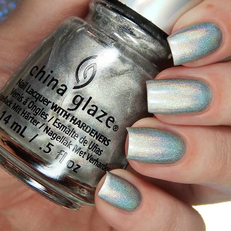 China Glaze OMG is a silver linear holographic. I used 2 coats for these photos.