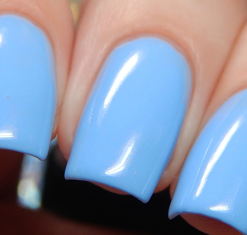 Glamletics is a medium periwinkle blue creme with a very subtle pink shimmer. I used 2 easy coats and a glossy top coat for these photos.