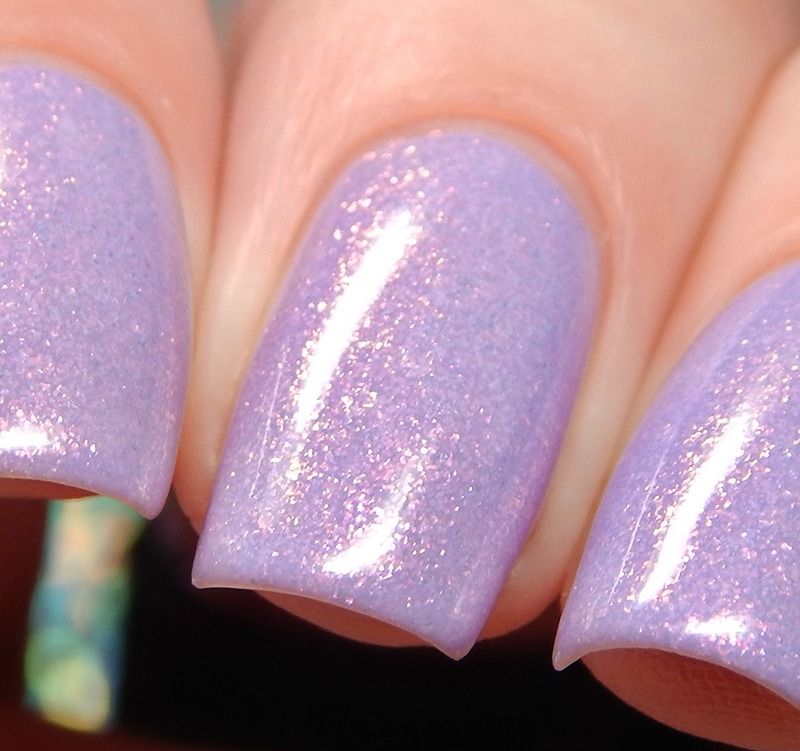 Get It Right, Get It Bright is a medium lavender with pink to gold shifting micro flecks mixed in. I used 3 thin coats and a glossy top coat for these photos.