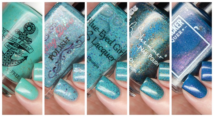 I am so impressed by the way you all created 5 completely different teal polishes! And I just love the one you created – combining teal with pink shimmer and holo is magnificent!