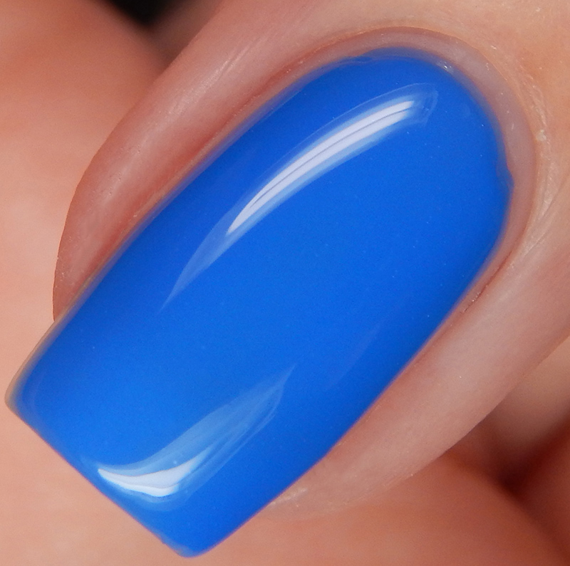 Azure Thing is a light but vibrant azure blue crelly. I used 3 thin coats and a glossy top coat for these photos.