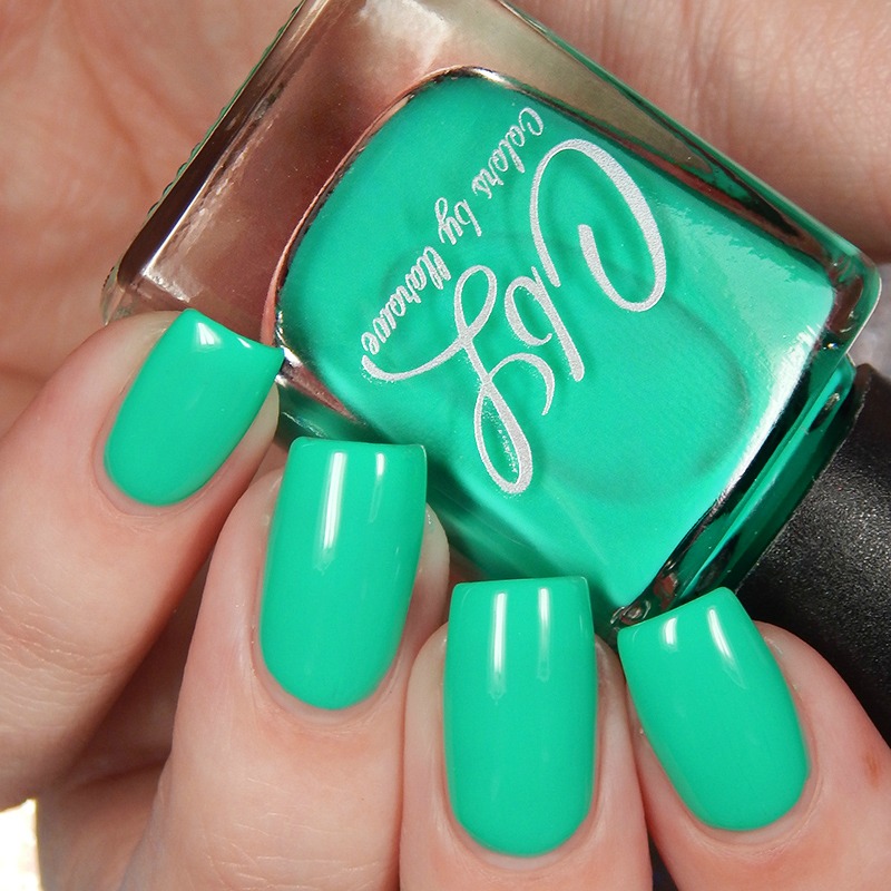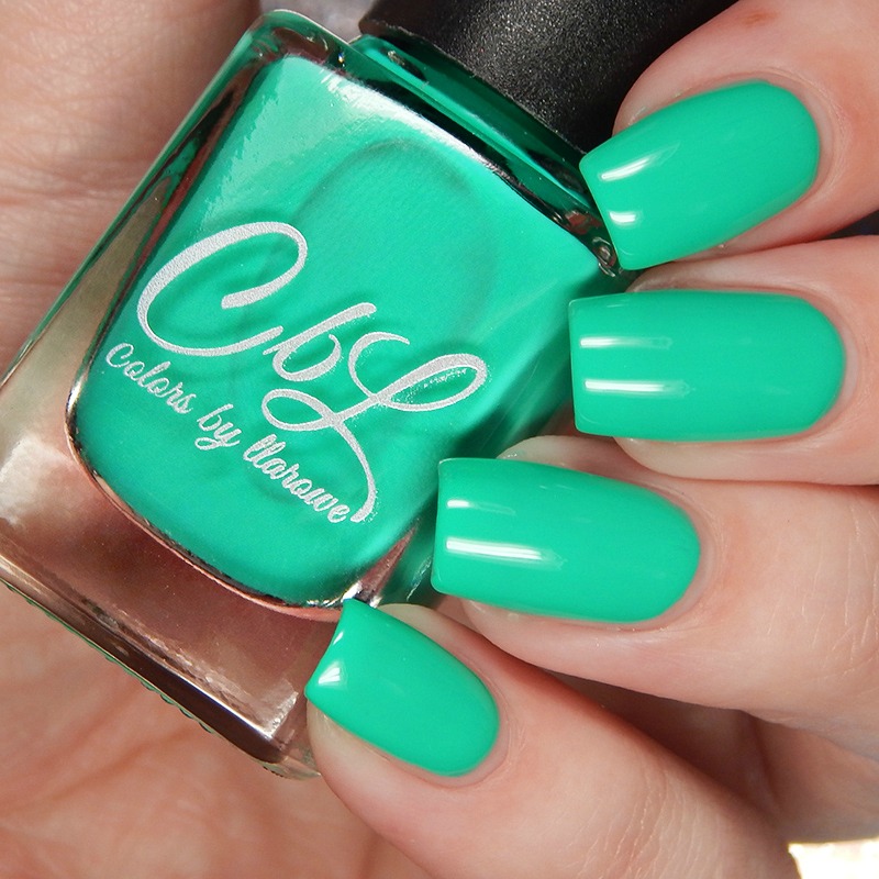 Let’s Boogie is a turquoise green crelly. I used 3 thin coats and a glossy top coat for these photos.