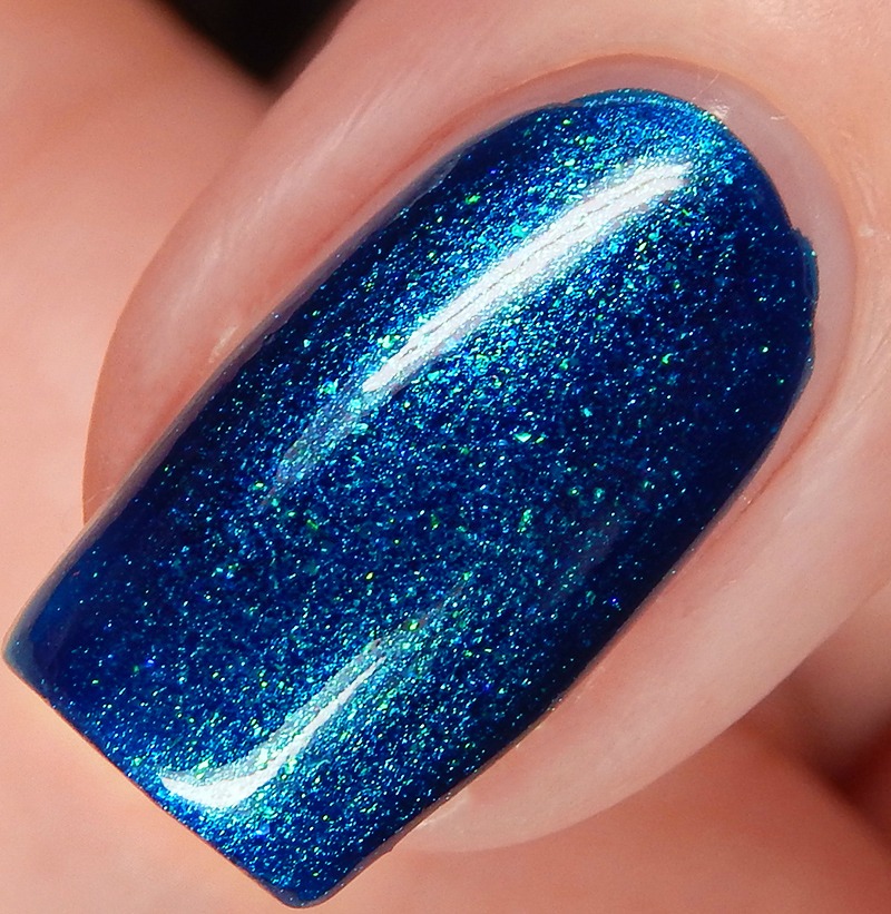Moonlight On The Water is a royal blue based multichrome that shifts from royal blue to aqua to purple with aurora pigment that shifts aqua to purple. I used 2 coats and a glossy top coat for these photos.