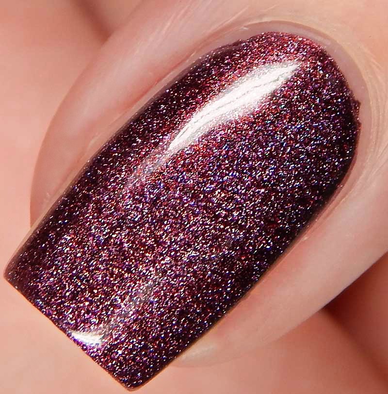 Burning Down The House is a medium plum holographic with a blue flame. I used 2 coats and a glossy top coat for these photos.