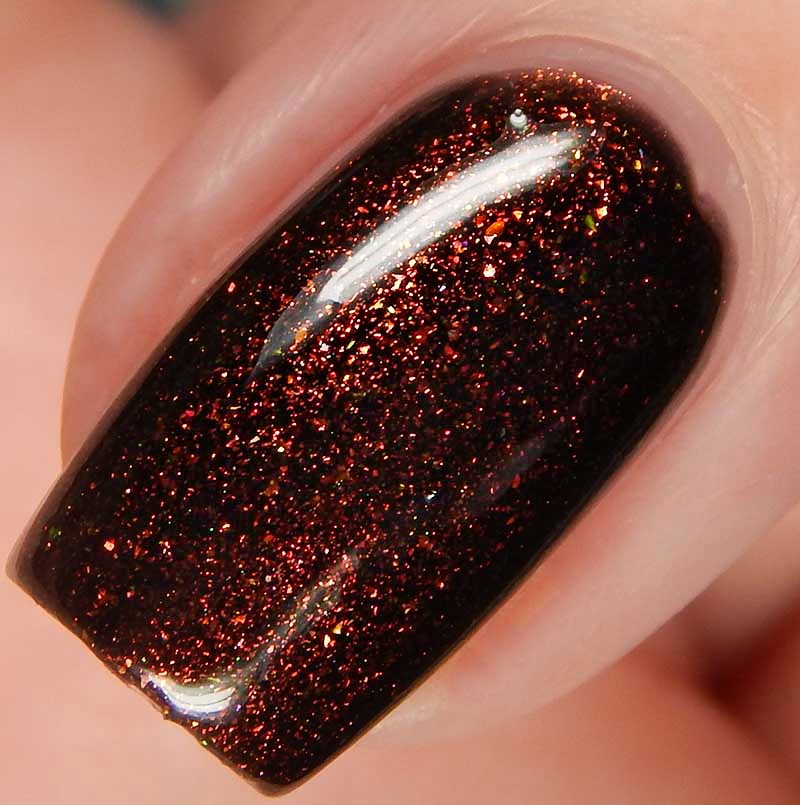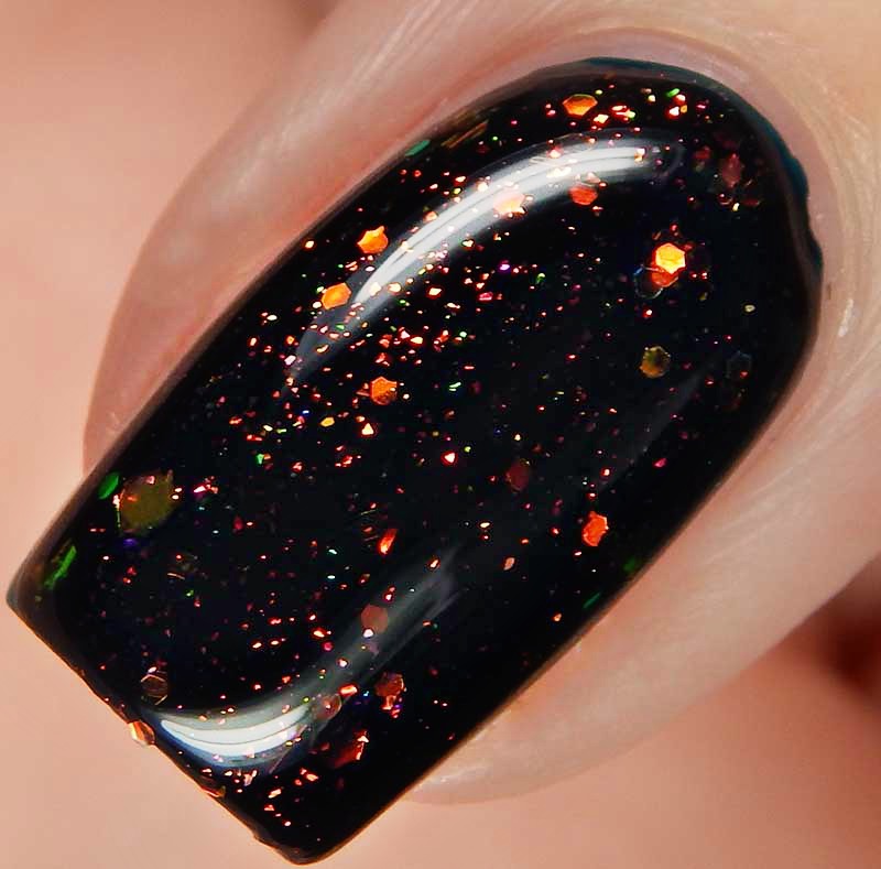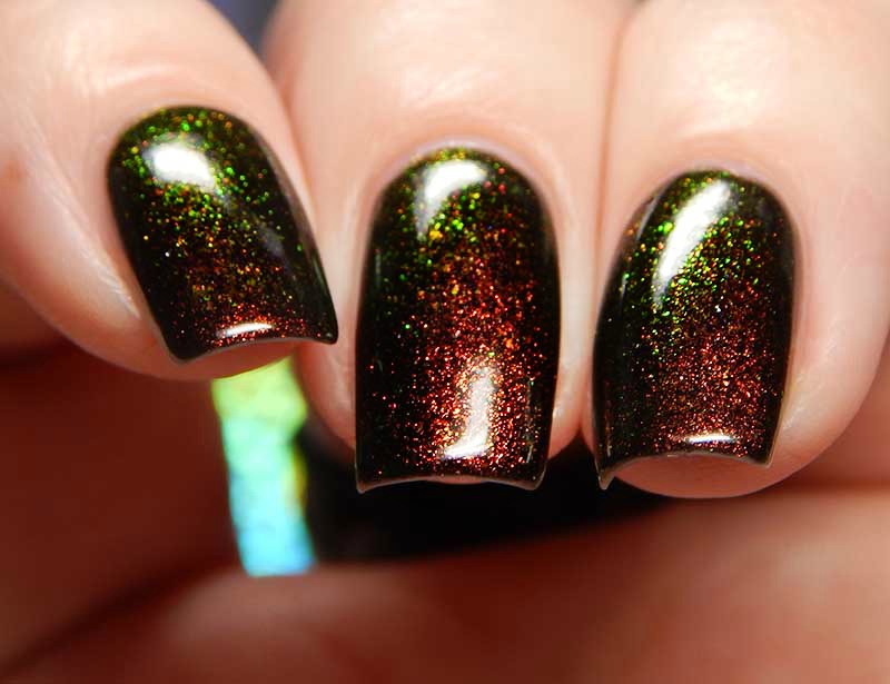 Snakeskin Boots is a blackened charcoal grey jelly base with original unicorn pee pigment and aurora pigment. I used 3 thin coats and a glossy top coat for these photos.
