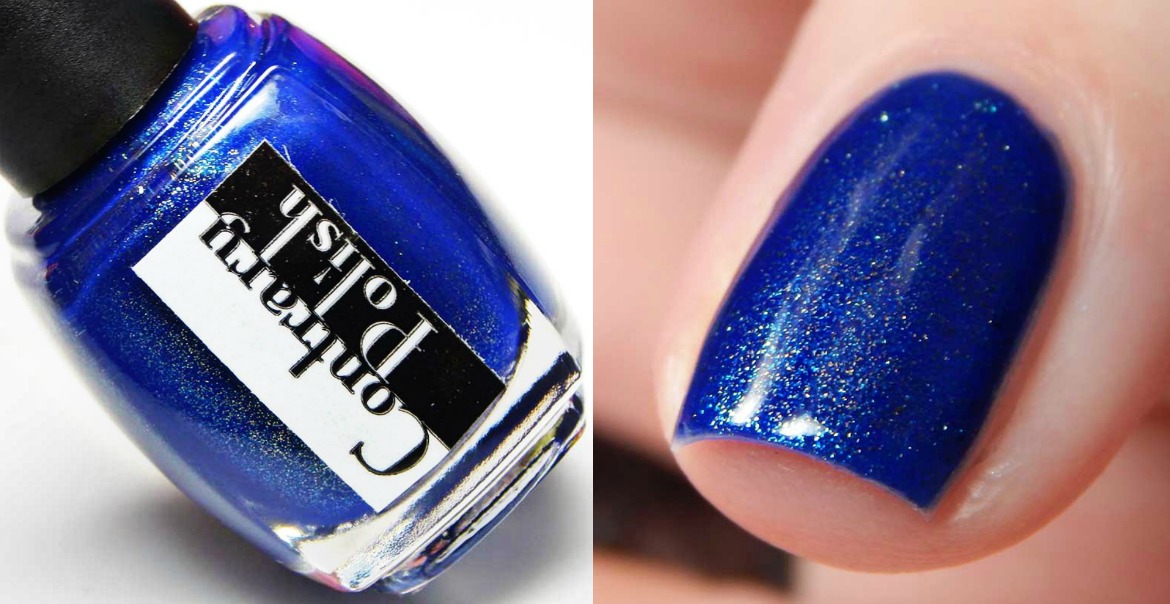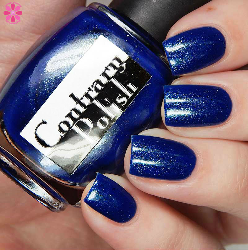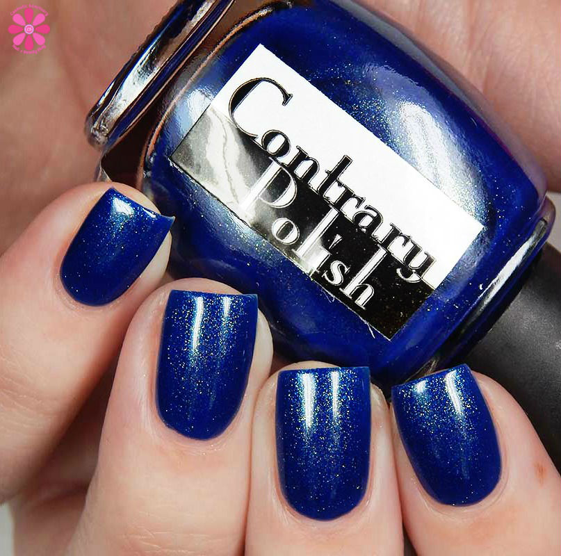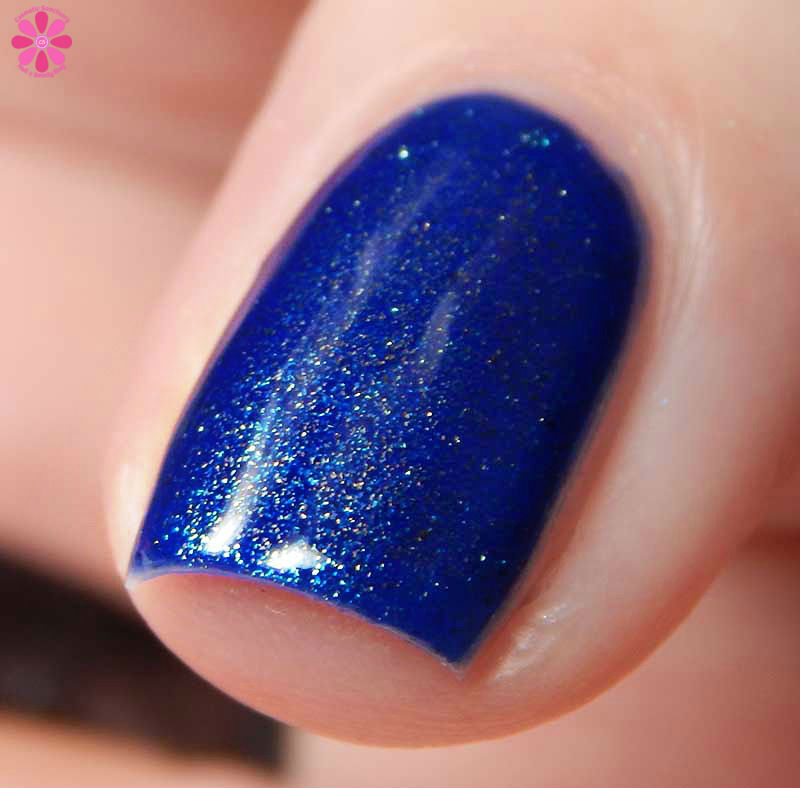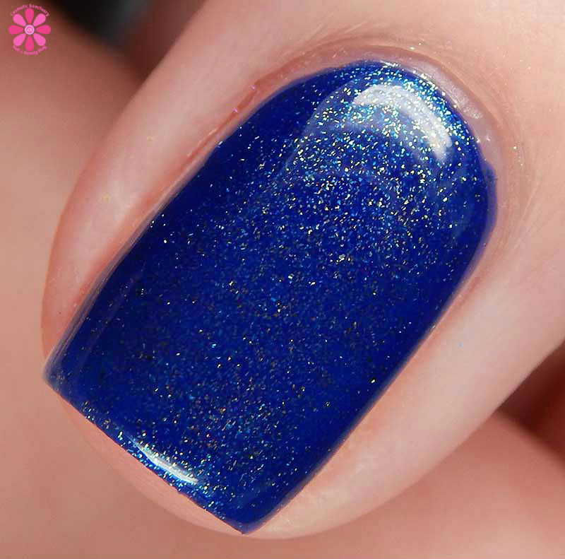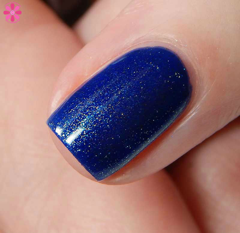 Contrary Polish Lucky Star is a medium cobalt blue crelly base with gold glass fleck shimmers mixed in. I used 2 easy coats and a glossy top coat for these photos.