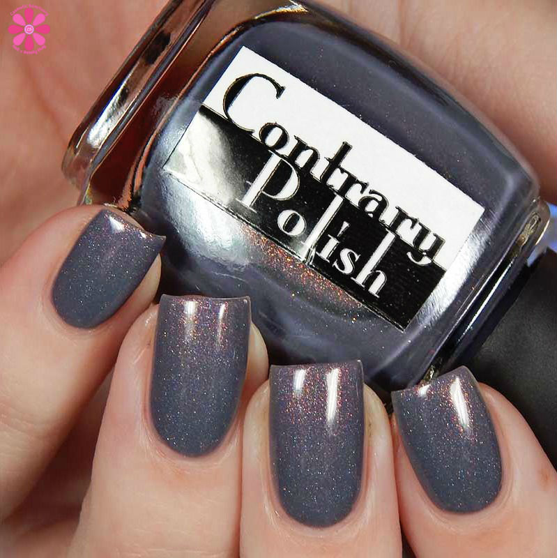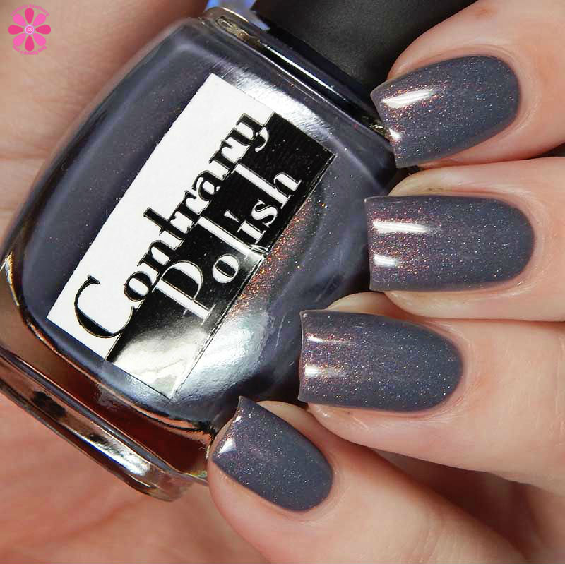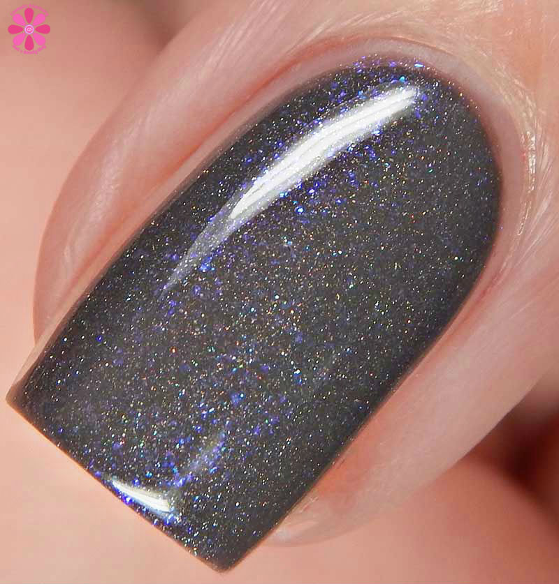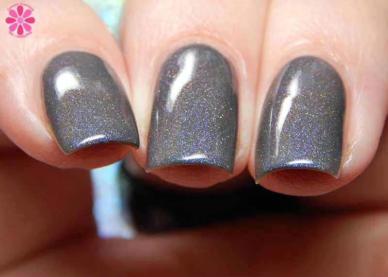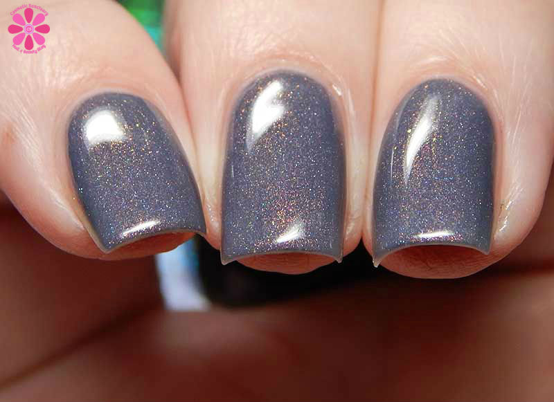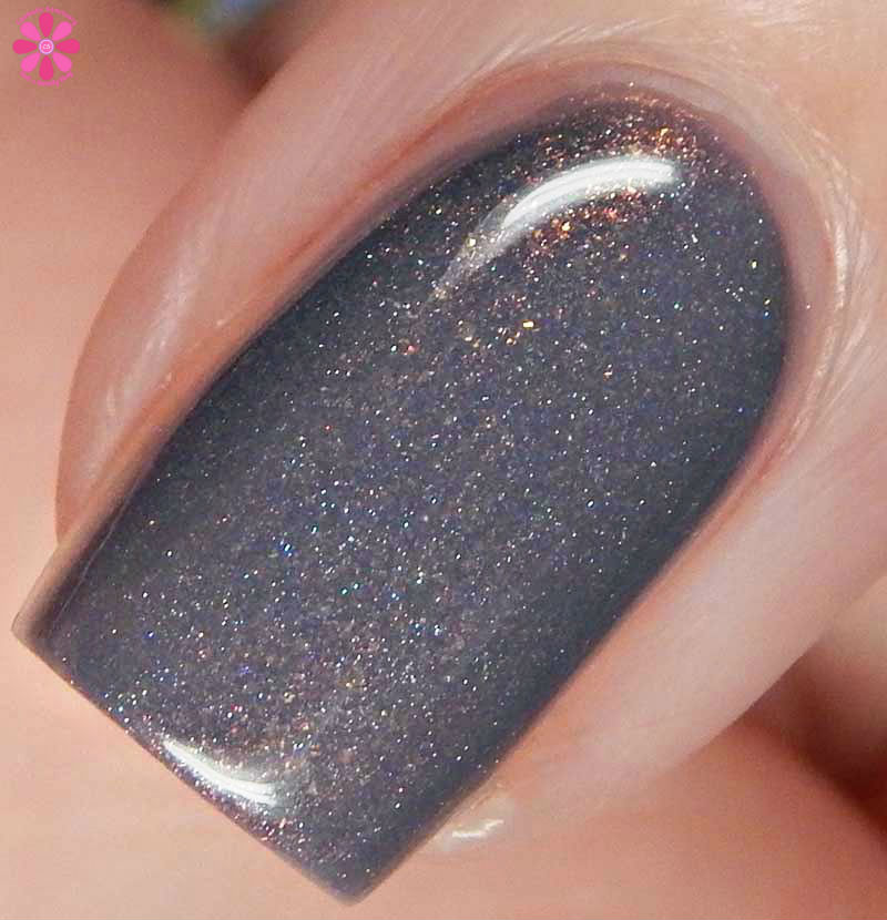 Banshee is a smokey greyed out purple crelly with copper shimmer and scattered holographic. I used 3 thin coats and a glossy top coat for these photos.