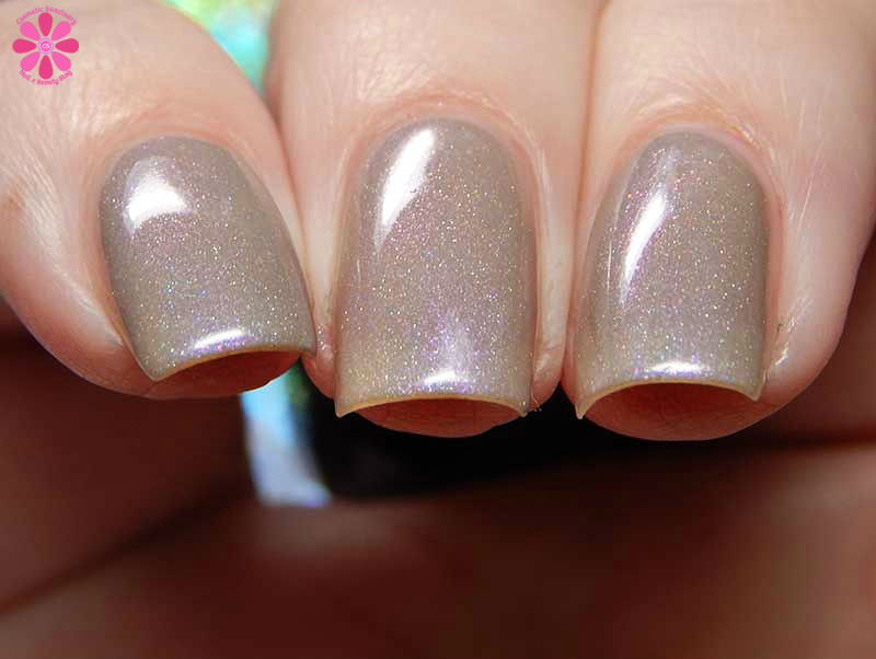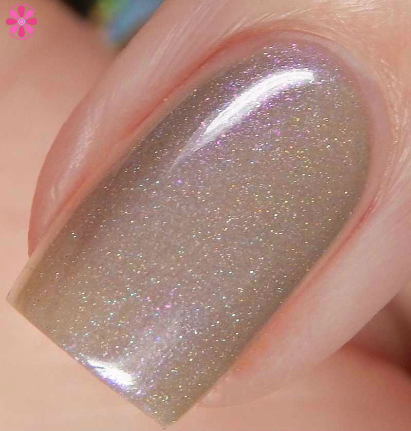 Witch is a light beige crelly with purple shimmer and scattered holographic. I used 3 thin coats and a glossy top coat for these photos.
