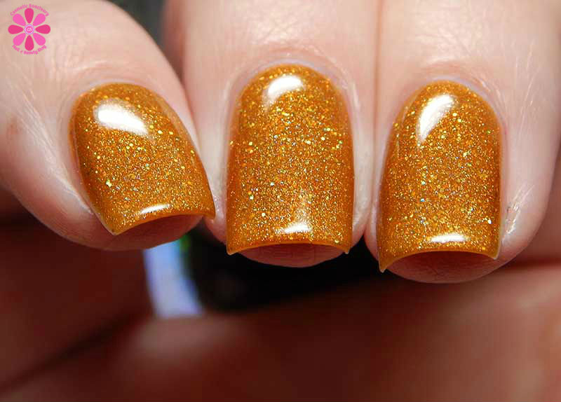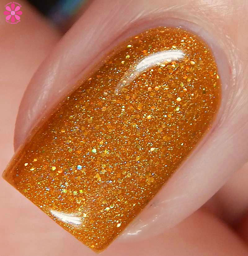 Zanna is a medium mustard yellow jelly base with a mix of holographic elements which include a linear holographic, scattered holographic and holographic microglitter. I used 2 coats and a glossy top coat for these photos.