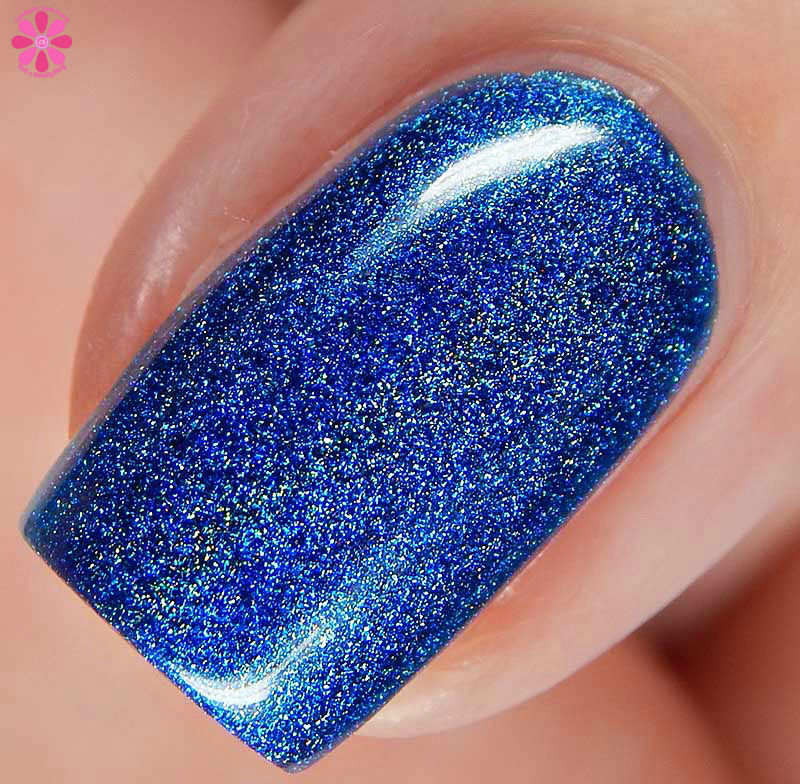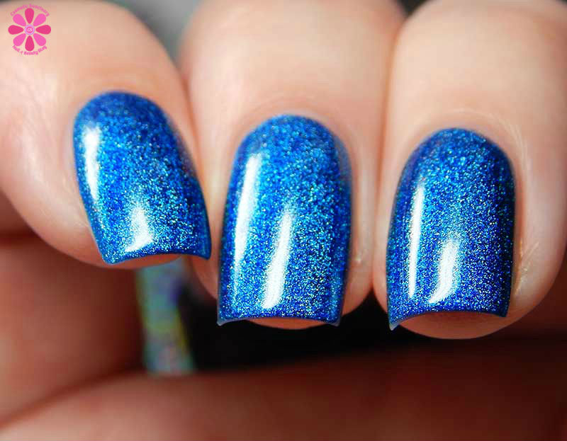 Fringe Benefits is a medium royal blue linear holographic. I used 2 coats and a glossy top coat for these photos.