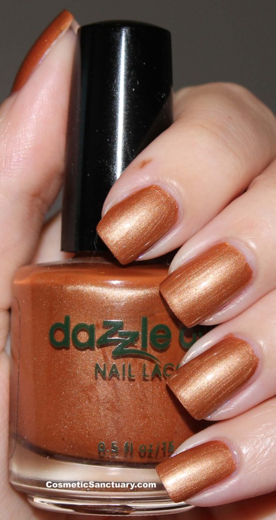 Tuscan Holiday was the surprise polish for me. When I first glanced at the bottle I thought “meh, this probably won’t look good on me”, but once I put it on, I actually really liked it. Tuscan Holiday is a nice bronze with a slight gold shimmer. Two coats of Tuscan Holiday with Dazzle Dry Top Coat to finish it off and this mani was good to go!