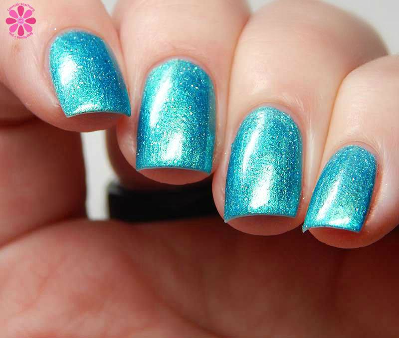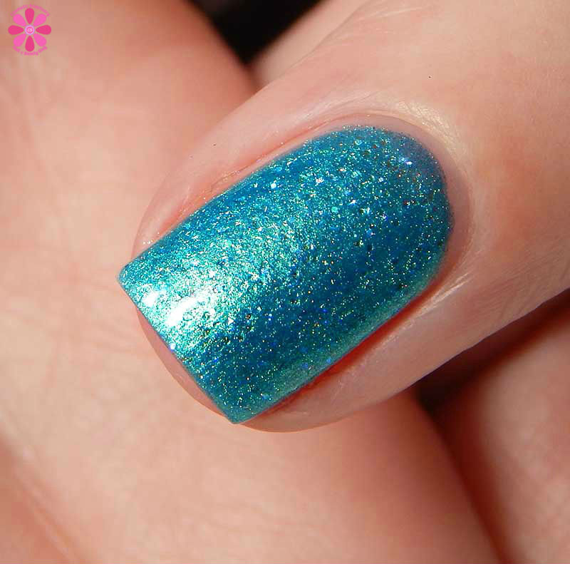 I Washed Up Like This is a vibrant turquoise base with a ton of aqua shimmer, holo flakes and color shifting turquoise glitter. I used 2 coats and a glossy top coat for these photos.