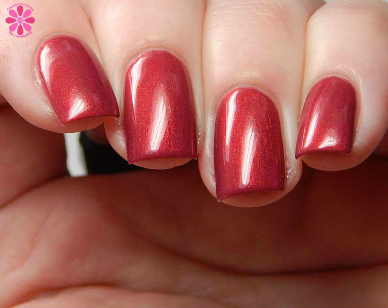 Resting Beach Face is possibly my top pick from this collection! This is a raspberry pink creme packed with red shimmer. It’s a touch more raspberry pink in person. I used 2 easy coats and a glossy top coat for these photos.