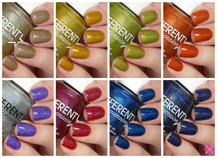 I have some more DIFFERENT dimension for you today! This time it’s the Fall 2015 collection – Falling In Love! This collection releases tonight along with the Halloween collection (there’s a quick giveaway in that post as well!), Every Power Possible (Autism Speaks charity polish) and this weeks single Shooting Star Series shade, Equuleus.