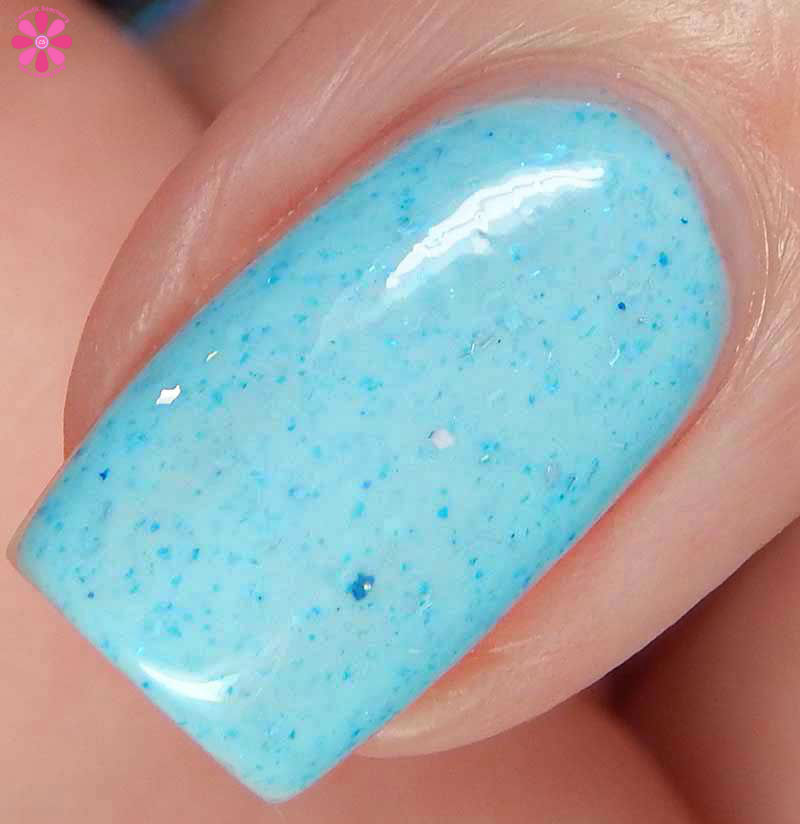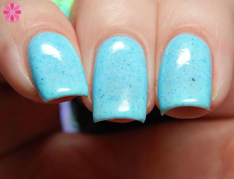 Liv To The Max is a stunning bright aqua blue crelly with microflakes and microglitter shreds in shades of blue and turquoise and silver holographic. I used 3 thin coats and a glossy top coat for these photos.