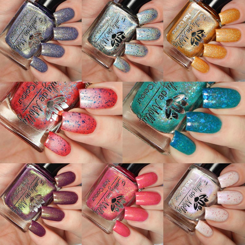 This collection is really well done, and I love that all the shades are so different from each other. From the actual base color to the elements involved, they all have their own thing and nothing really ties them together, so there seems to be a little for everyone.
