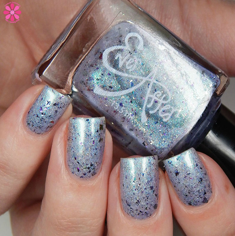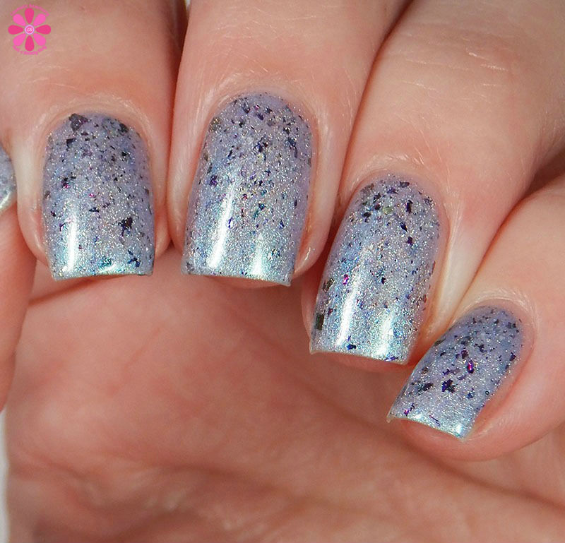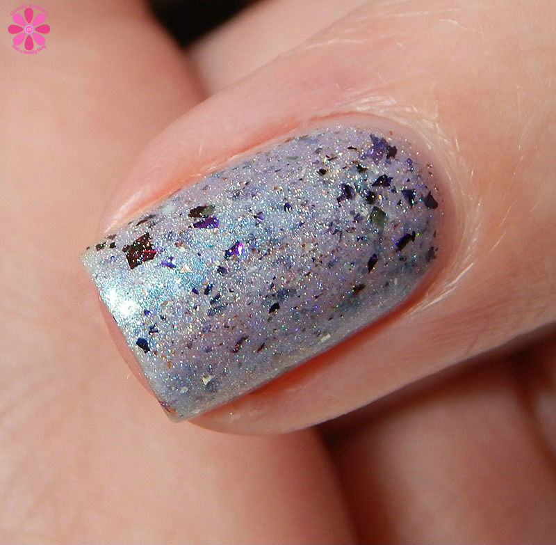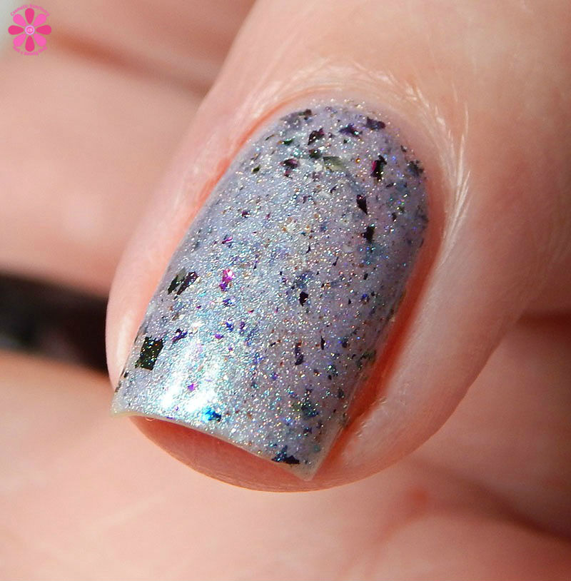 Ever After Polish I Want To Be A Part Of It is a is a dusty lavender creme linear holographic with multichrome flakes, silver micro flakes, and vibrant teal shimmer. I used 2 coats and a glossy top coat for these photos.