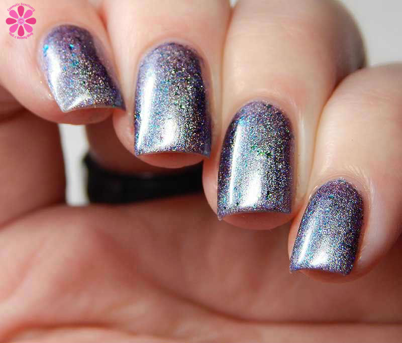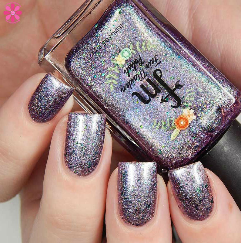 Ok, now for what you are really here for… Fair Maiden Polish In Bloom! This is a beautiful multichrome holographic flake polish created as a group custom for the Fantasmic Flakies Facebook Group.