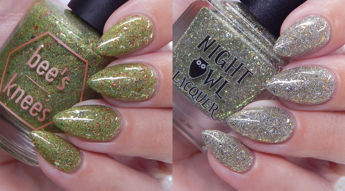 Green lovers rejoice! While green isn’t for me, these are nicely done shades. I’m more partial to Night Owl Lacquer due to the silvery look and I do love reflective glitters.