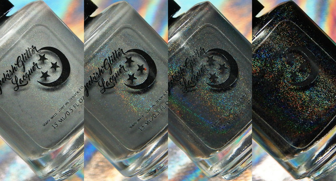 Recently Geekish Glitter Lacquer released a 4 piece collection perfect to wear alone – or to ombre together for a “Fade To Black” type look. Tonight I have that set to share – and it’s the Geekish Glitter Lacquer Fade To Black Collection!