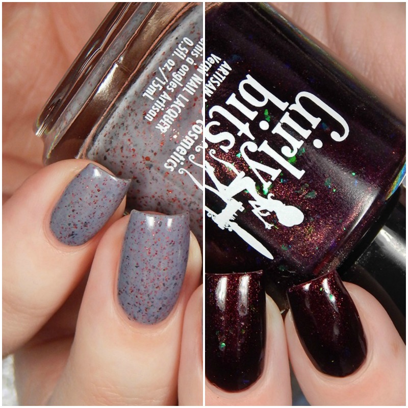 Both shades look good as stand alone manicures, but also together with an accent. They match with the flecks in the left shade, but are different enough to appease different polish types.