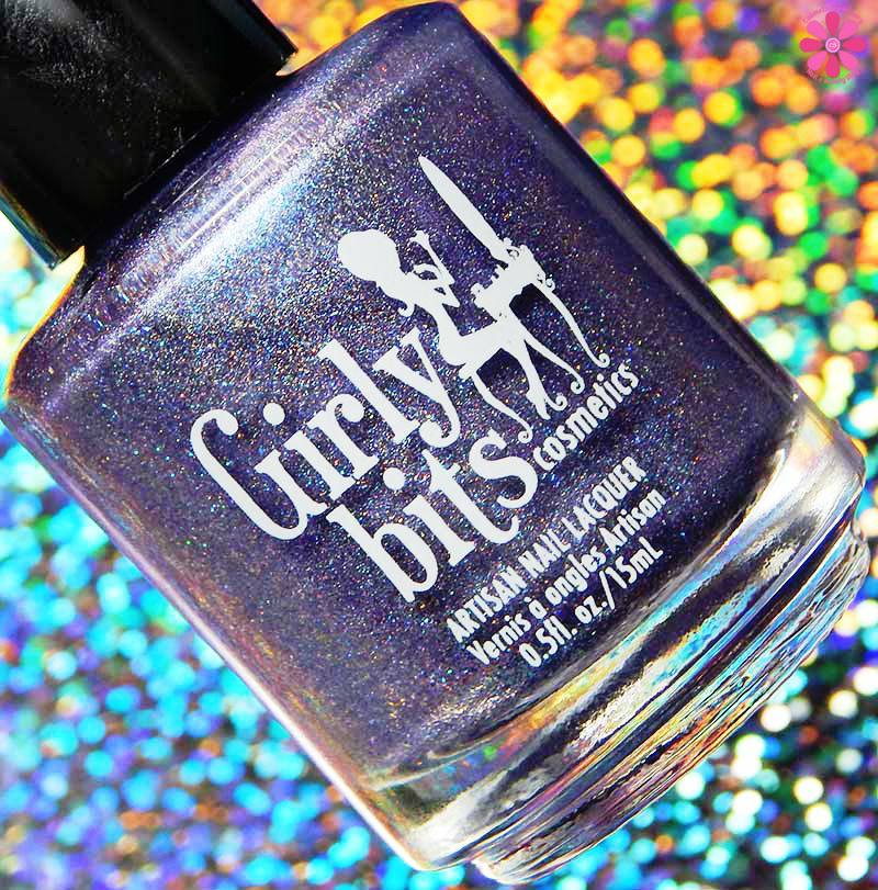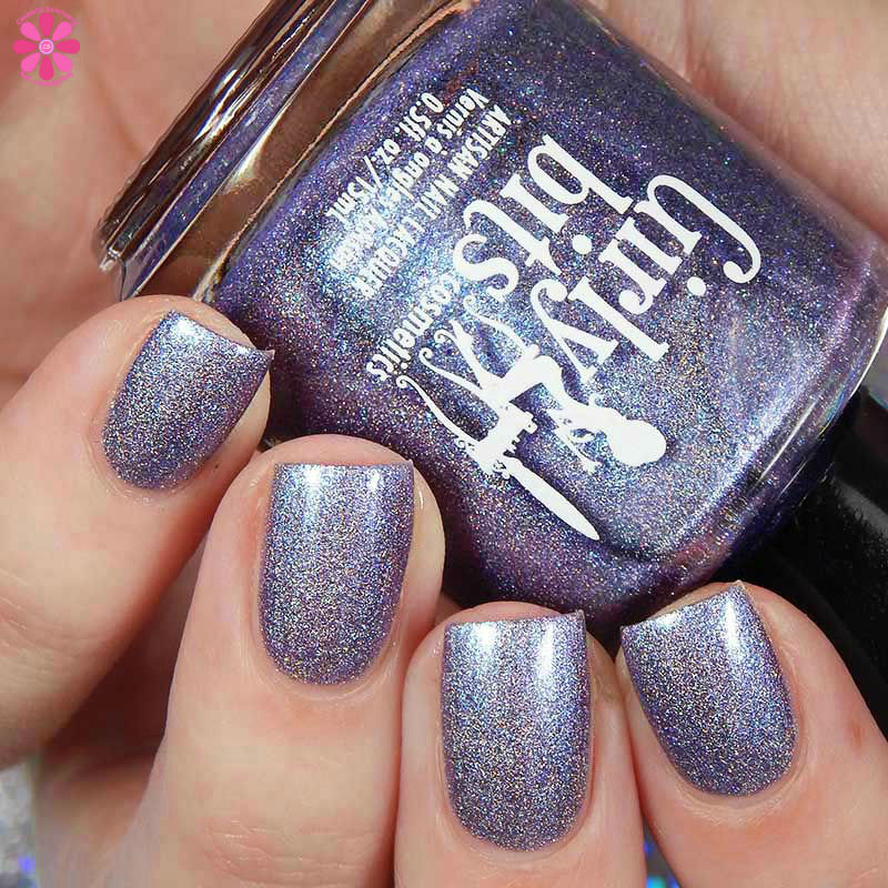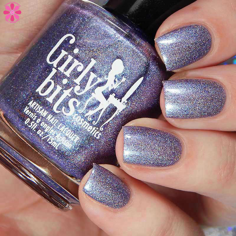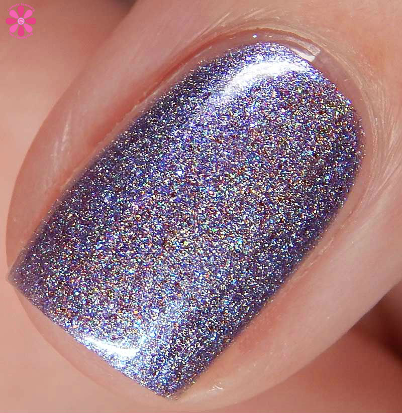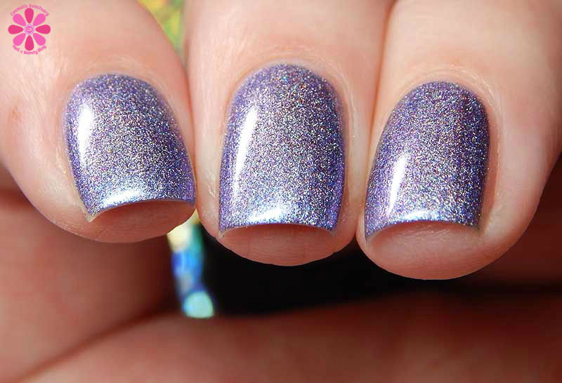 Fox Trot is a medium lilac linear holographic with pink to blue shifting shimmer. I used 2 coats and a glossy top coat for these photos.