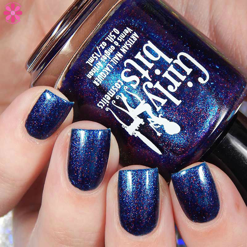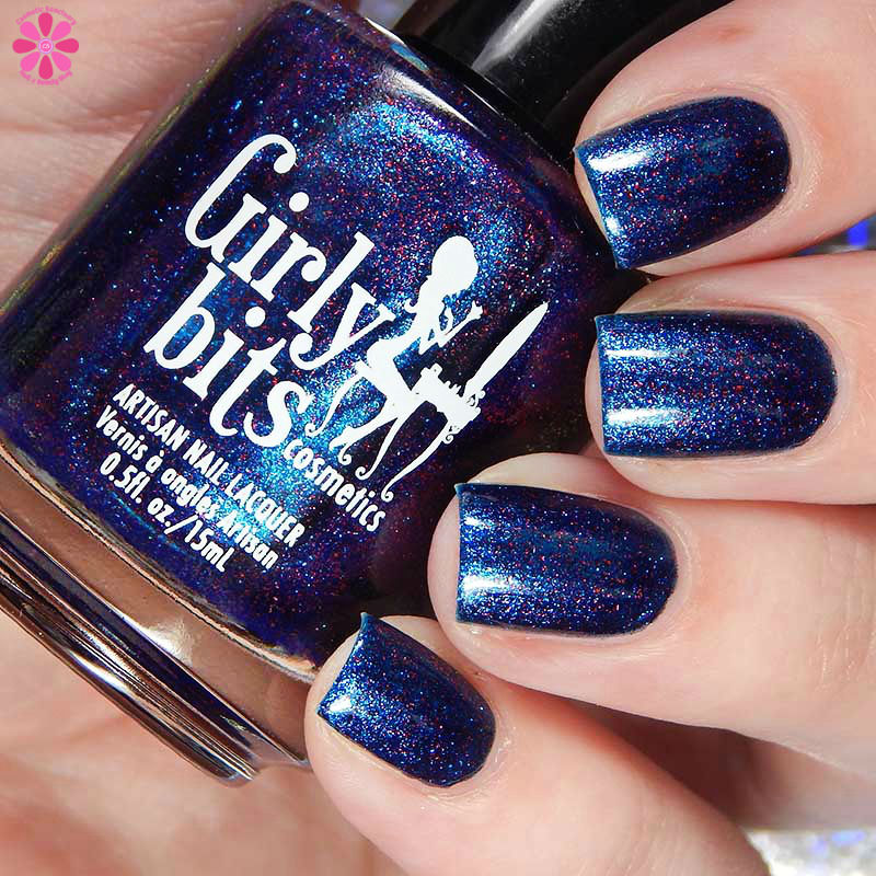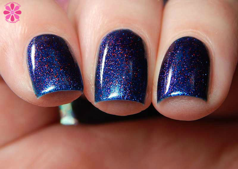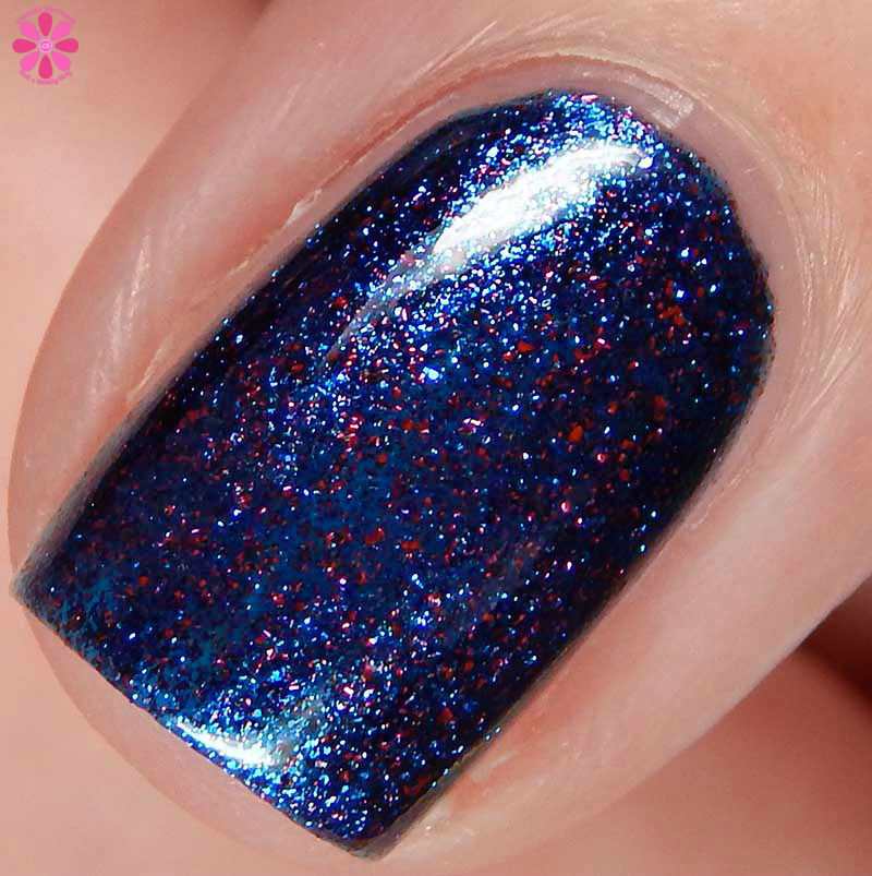 Keep Calm, Terry On is a midnight blue crelly base packed with red and blue shimmers. I used 2 easy coats and a glossy top coat for these photos.
