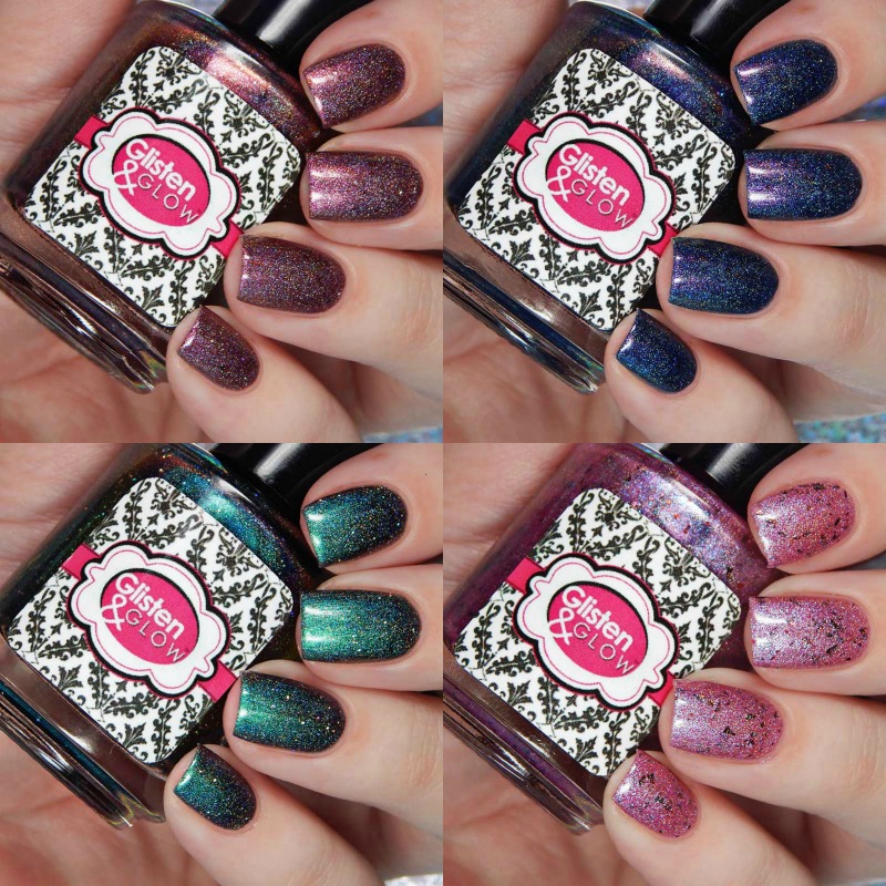 Every year Jill does something to celebrate her birthday on January 8th, and this year she made a gorgeous duo, which we’ll be looking at first. The Glorious Glistenettes is a monthly series that started around Black Friday and they are small batch, limited edition polishes. For the initial Glorious Glisenettes release, Jill had 3 stunning thermals. This time around we have 2 gorgeous holographics with shimmers and other added effects.
