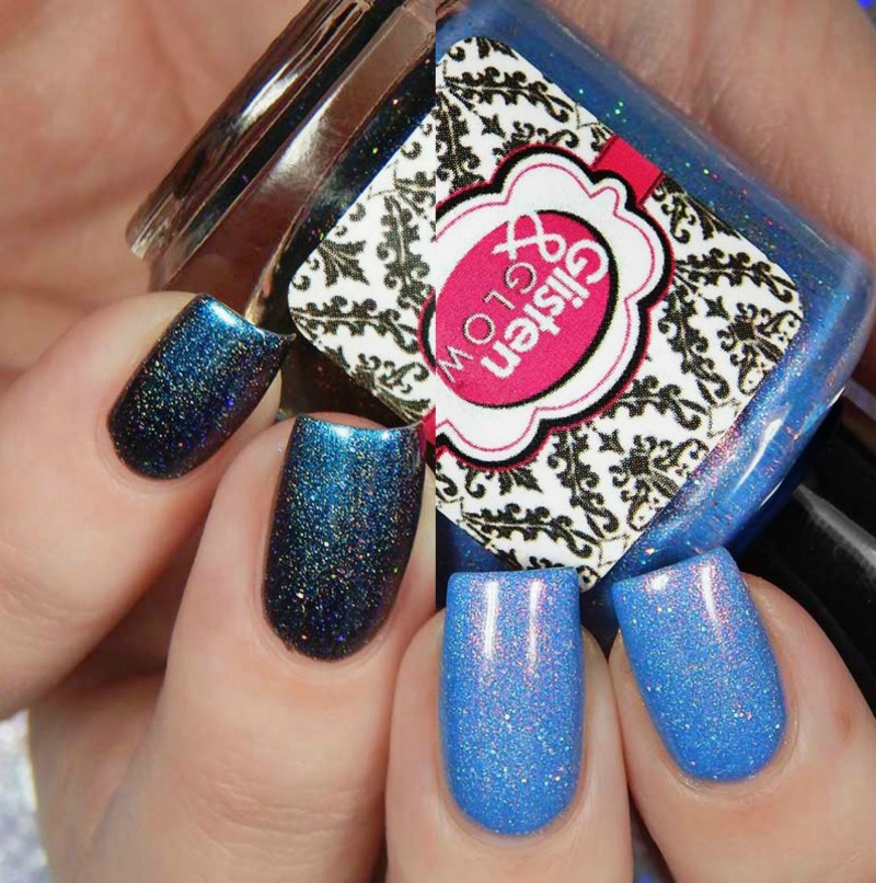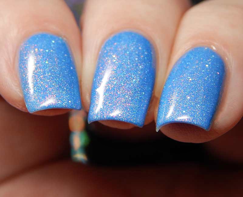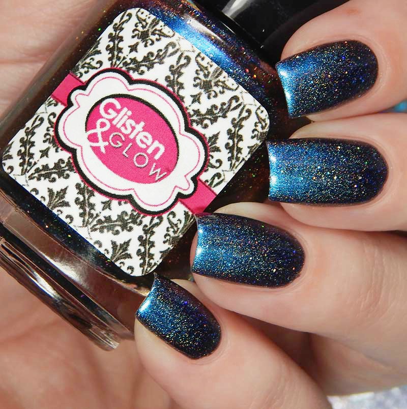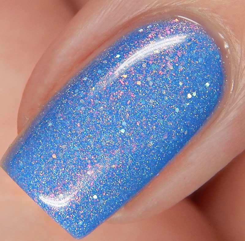 Siren of the Sea is actually my favorite of the two! This is an Atlantic Ocean blue creme based linear holographic with pink to copper unicorn pigment and silver galaxy holographic microglitters mixed in. I used 2 easy coats and a glossy top coat for these photos.