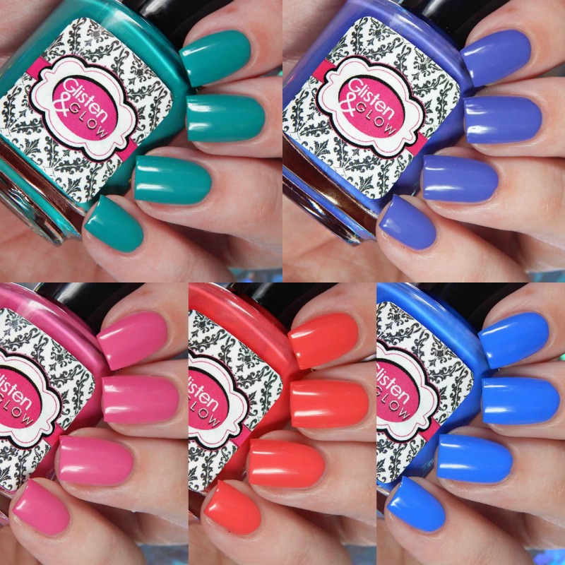 This is a 5 piece creme collection with vibrant colors. They aren’t neon, but have that fun Summer vibe. All 5 shades are nearly 1 coaters, but I did 2 for all of my photos.