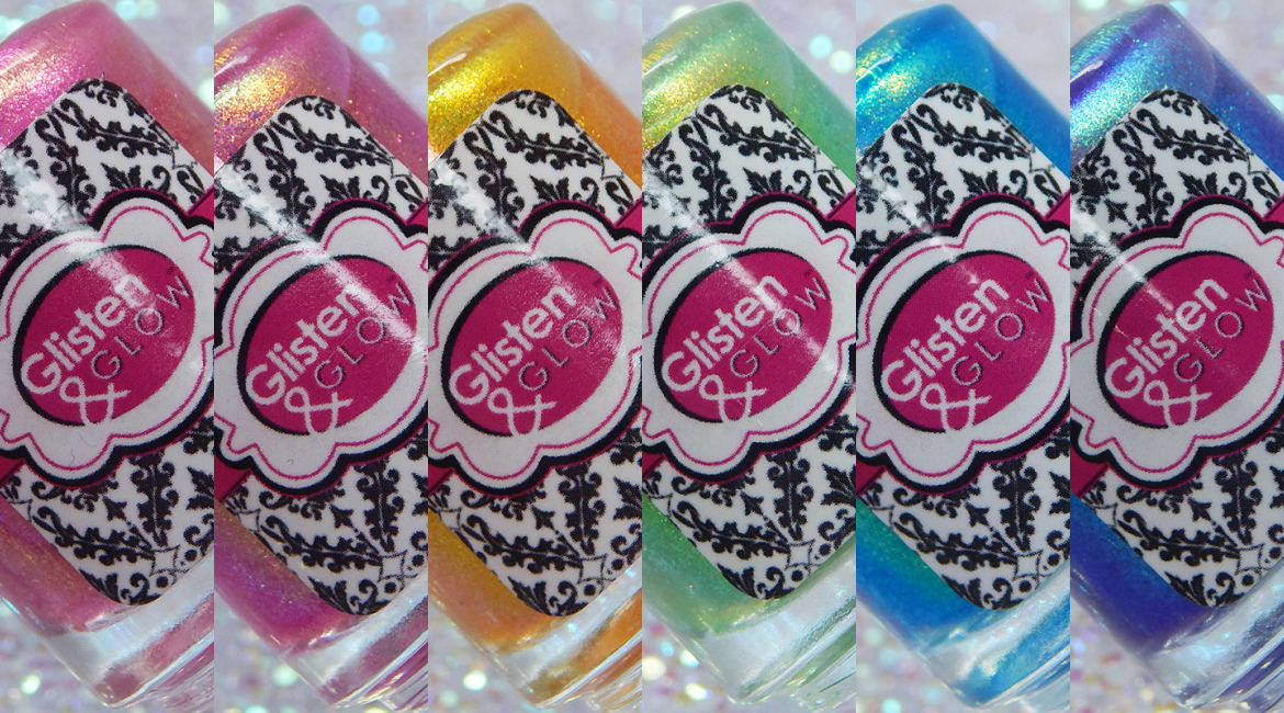 As you can see – the Glisten & Glow The Mermaid Collection is a 6 piece set of vibrant jelly bases packed with shifty shimmers! Very mermaid-esque.