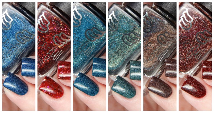 This collection is a revamp of the Vampire Collection, it has four new linear holos in deep vampy shades and two vampy jelly glitters. Vampire Countess 2.0, Queen of the Damned 2.0 and Vlad III 2.0 are still a part of the collection.