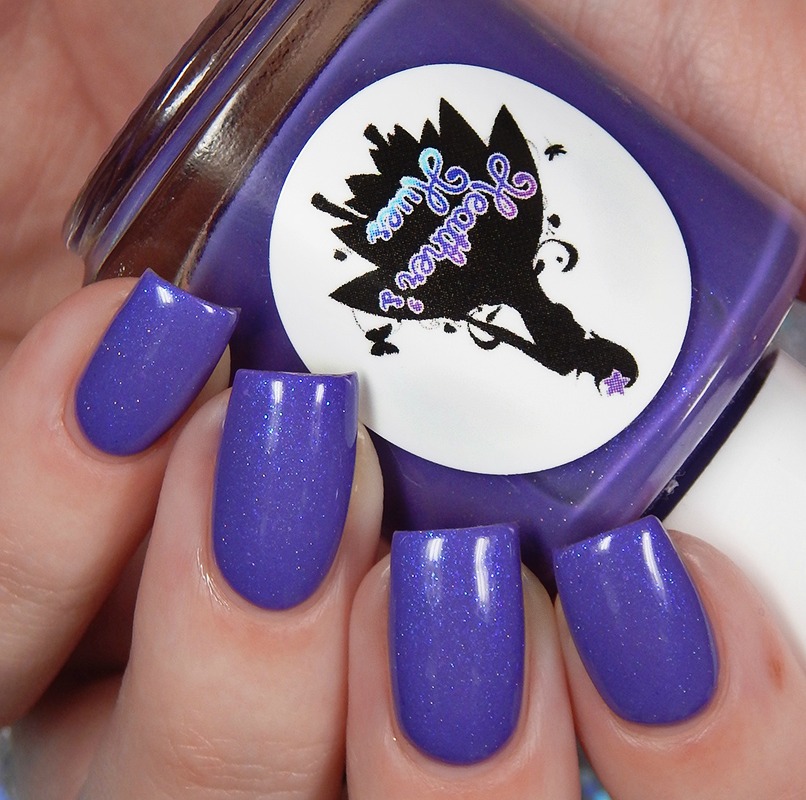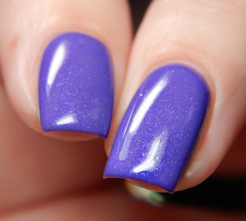 Sparkly Unicorn Poop was the original shade created to match the photo of irises. This is a medium, cool toned purple creme with purple and blue shimmer flecks mixed in. I used 3 thin coats and a glossy top coat for these photos.