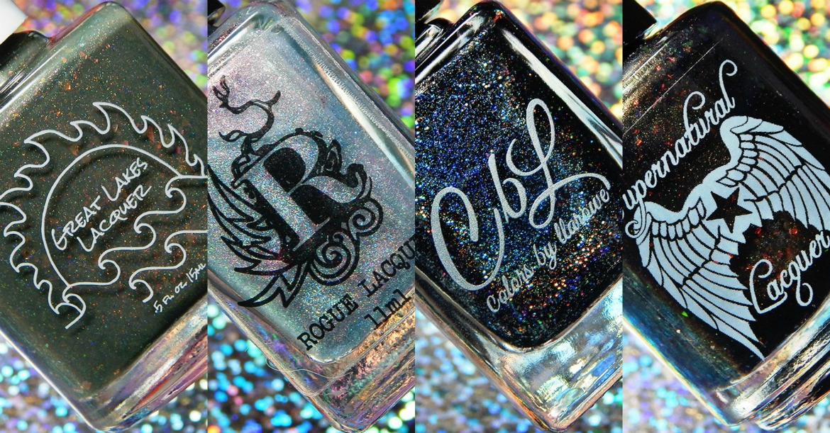 Grenade is a black linear holographic with galaxy holo added in. I used 2 coats and a glossy top coat for these photos.