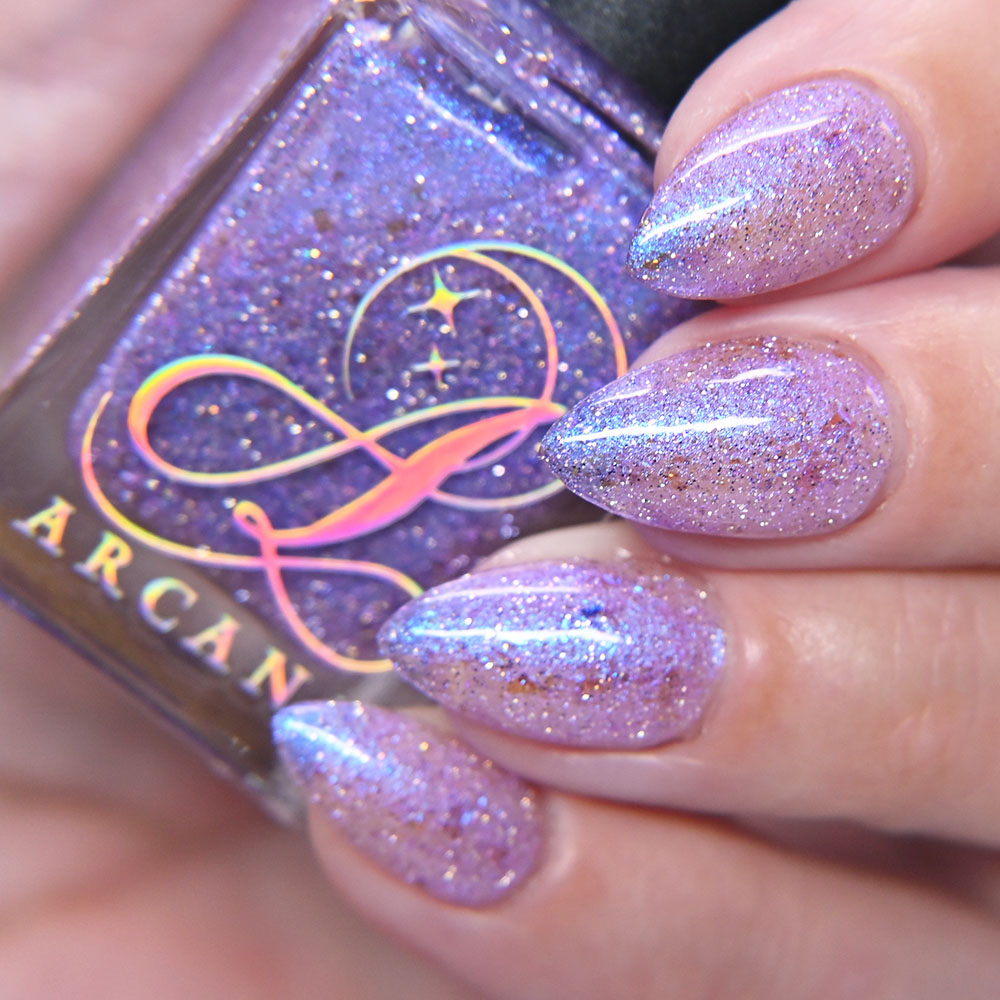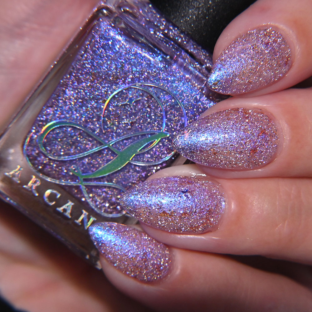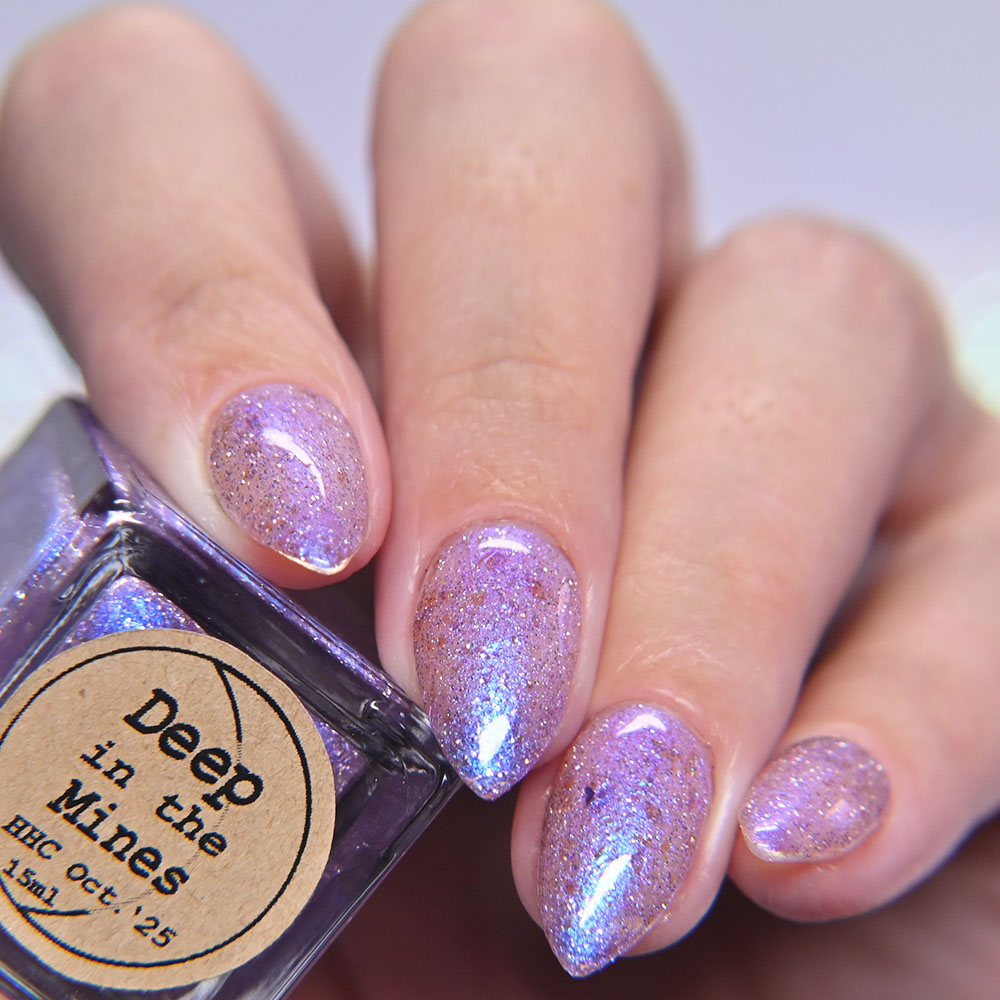 Theme: Arcana Lacquer continues their ‘Cozy Gaming’ series with a polish inspired by digging deep in the mines and finding crystals and other treasures!