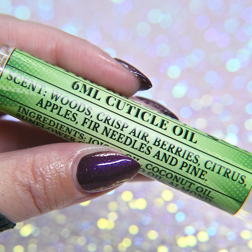 Description: “For The Record, I Quit!” Cuticle Oil has scent notes of: Woods, Crisp Air, Berries, Citrus, Apples, Fir Needles and Pine.