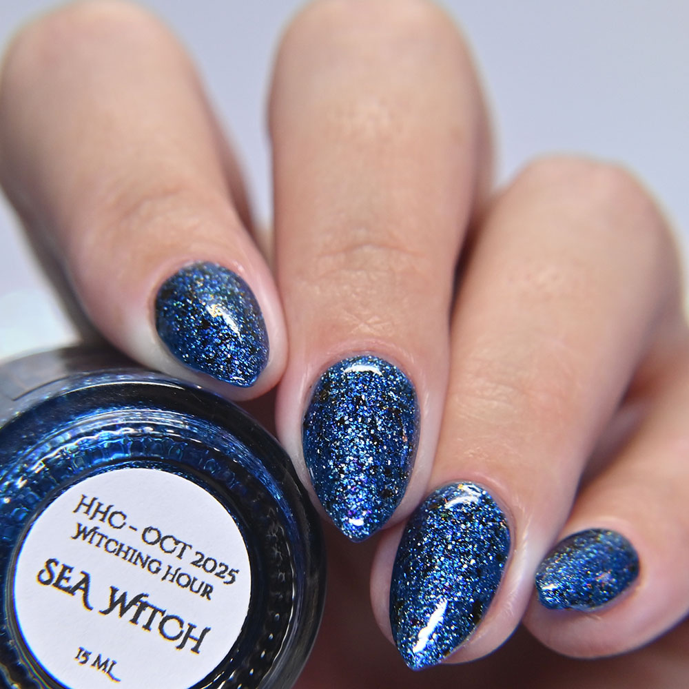 Description: Sea Witch is a royal blue jelly with ultrachrome chameleon flakes, and silver holo flakes.